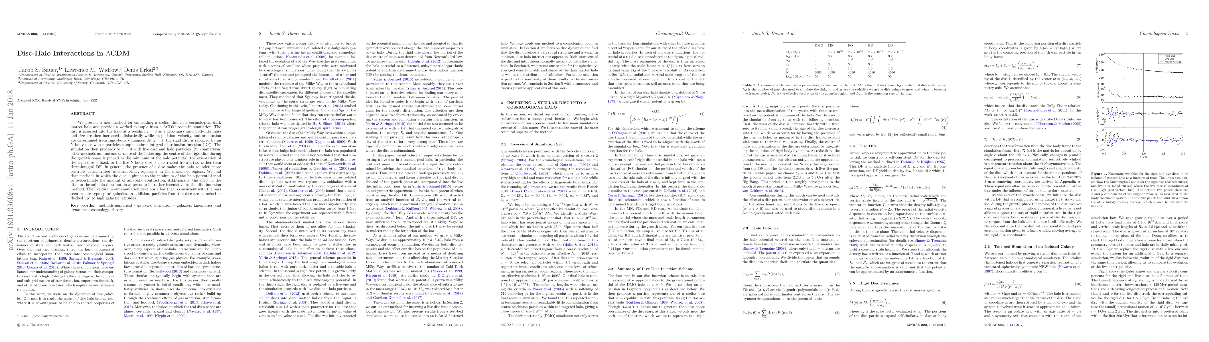 We present a new method for embedding a stellar disc in a cosmological dark matter halo and provide a worked example from a {\Lambda}CDM zoom-in simulation. The disc is inserted into the halo at a redshift z = 3 as a zero-mass rigid body. Its mass and size are then increased adiabatically while its position, velocity, and orientation are determined from rigid-body dynamics. At z = 1, the rigid disc is replaced by an N-body disc whose particles sample a three-integral distribution function (DF). The simulation then proceeds to z = 0 with live disc and halo particles. By comparison, other methods assume one or more of the following: the centre of the rigid disc during the growth phase is pinned to the minimum of the halo potential, the orientation of the rigid disc is fixed, or the live N-body disc is constructed from a two rather than three-integral DF. In general, the presence of a disc makes the halo rounder, more centrally concentrated, and smoother, especially in the innermost regions. We find that methods in which the disc is pinned to the minimum of the halo potential tend to overestimate the amount of adiabatic contraction. Additionally, the effect of the disc on the subhalo distribution appears to be rather insensitive to the disc insertion method. The live disc in our simulation develops a bar that is consistent with the bars seen in late-type spiral galaxies. In addition, particles from the disc are launched or "kicked up" to high galactic latitudes.