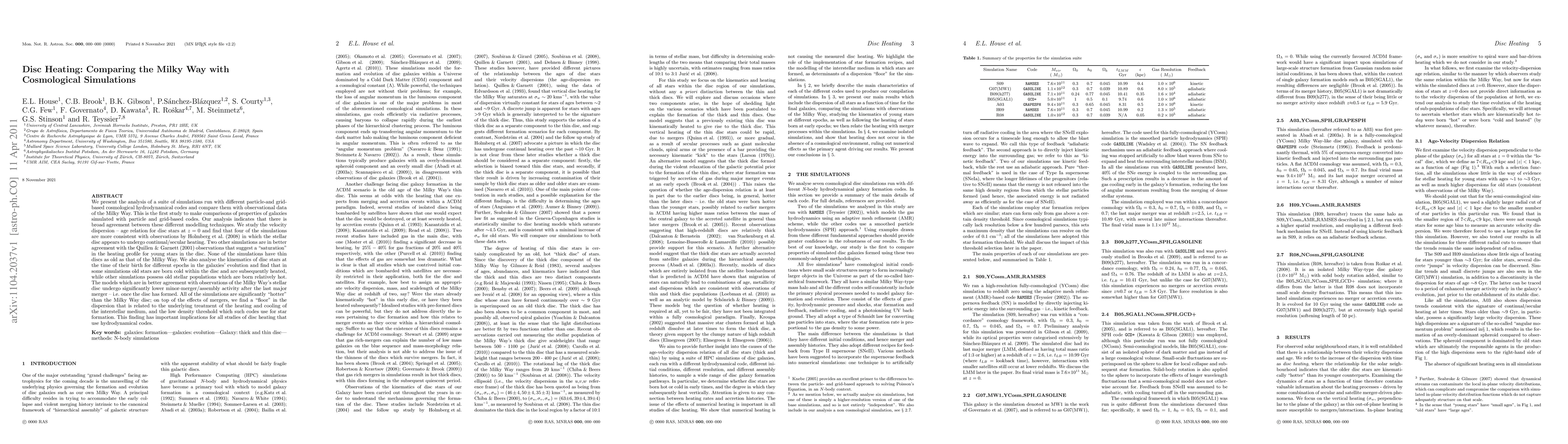 This study compares the Milky Way's disc heating with cosmological simulations using particle and grid-based codes, finding broad agreement between different modelling techniques. Simulations show varying levels of disc heating, with some aligning with continual heating and others suggesting a saturation effect, but none match the Milky Way's old thin disc.