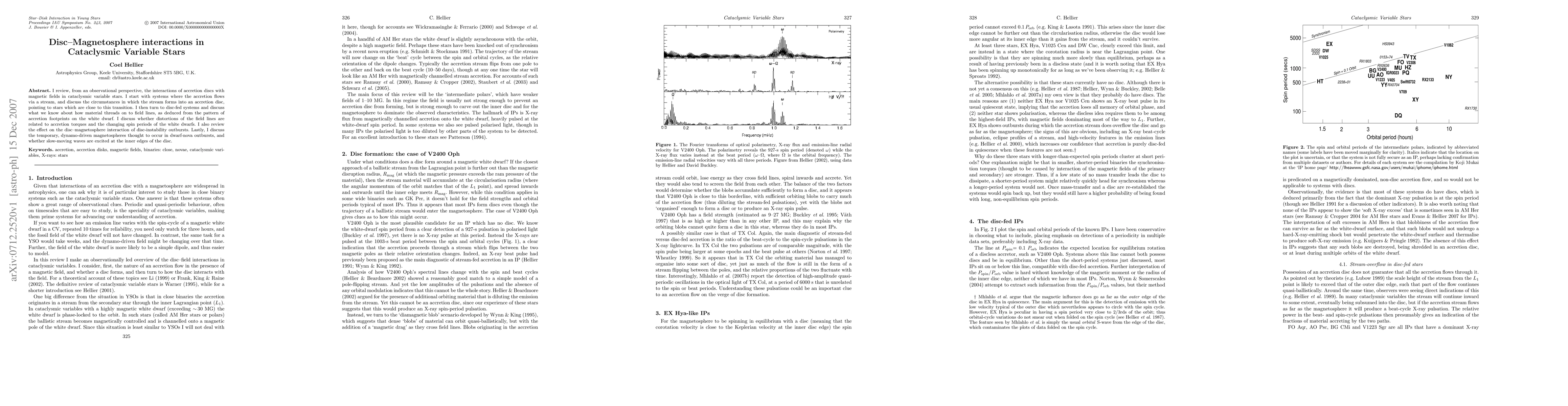 This paper reviews observational evidence of disc-magnetosphere interactions in cataclysmic variable stars, focusing on accretion flows via streams and disc-fed systems, the impact of field line distortions on accretion processes, and the effects of disc-instability outbursts and dynamo-driven magnetospheres during dwarf-nova outbursts.