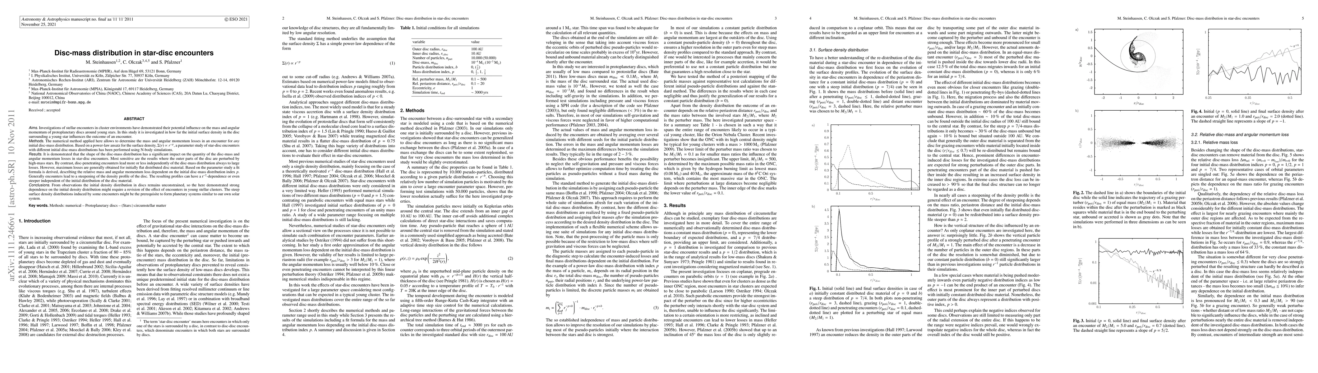This study investigates how different initial disc-mass distributions affect the outcomes of star-disc encounters using N-body simulations. It finds that the disc's initial mass distribution significantly influences the mass and angular momentum losses, with maximum losses occurring for initially flat distributions, and encounters steepening the density profile of the disc.