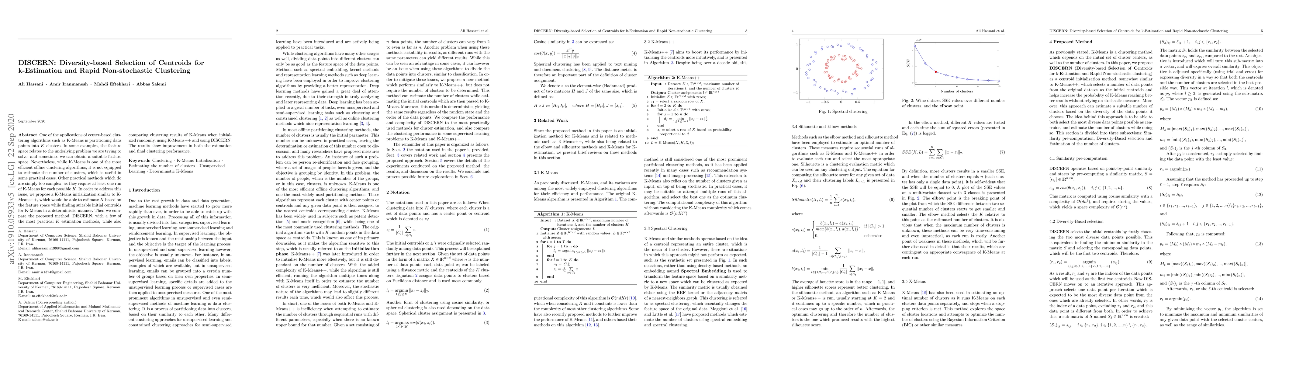 One of the applications of center-based clustering algorithms such as K-Means is partitioning data points into K clusters. In some examples, the feature space relates to the underlying problem we are trying to solve, and sometimes we can obtain a suitable feature space. Nevertheless, while K-Means is one of the most efficient offline clustering algorithms, it is not equipped to estimate the number of clusters, which is useful in some practical cases. Other practical methods which do are simply too complex, as they require at least one run of K-Means for each possible K. In order to address this issue, we propose a K-Means initialization similar to K-Means++, which would be able to estimate K based on the feature space while finding suitable initial centroids for K-Means in a deterministic manner. Then we compare the proposed method, DISCERN, with a few of the most practical K estimation methods, while also comparing clustering results of K-Means when initialized randomly, using K-Means++ and using DISCERN. The results show improvement in both the estimation and final clustering performance.