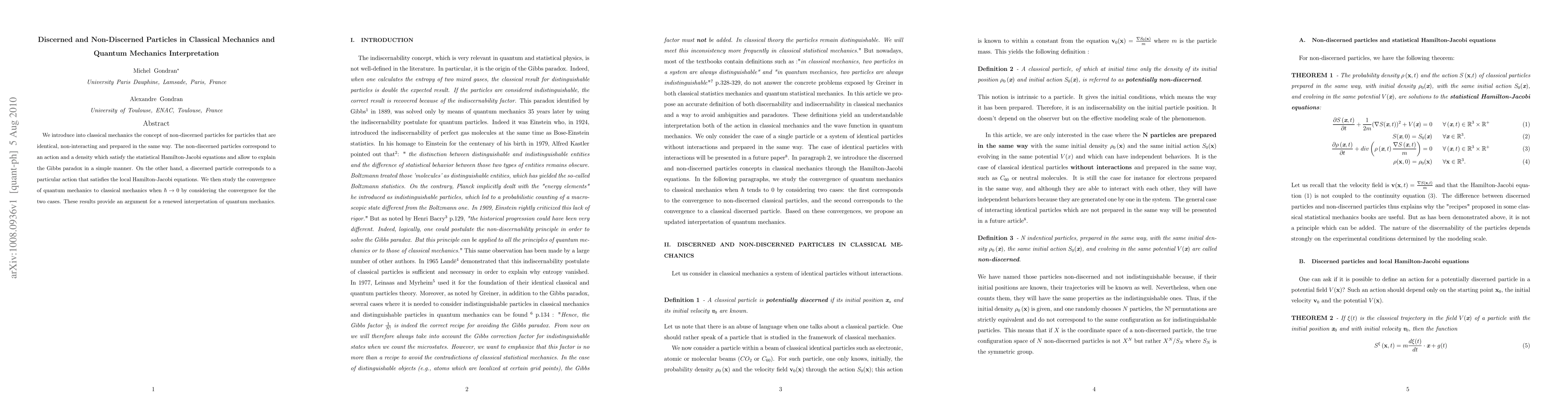 This paper introduces non-discerned particles in classical mechanics to address the Gibbs paradox and contrasts them with discerned particles. It also explores the convergence of quantum mechanics to classical mechanics, suggesting a new interpretation of quantum mechanics.