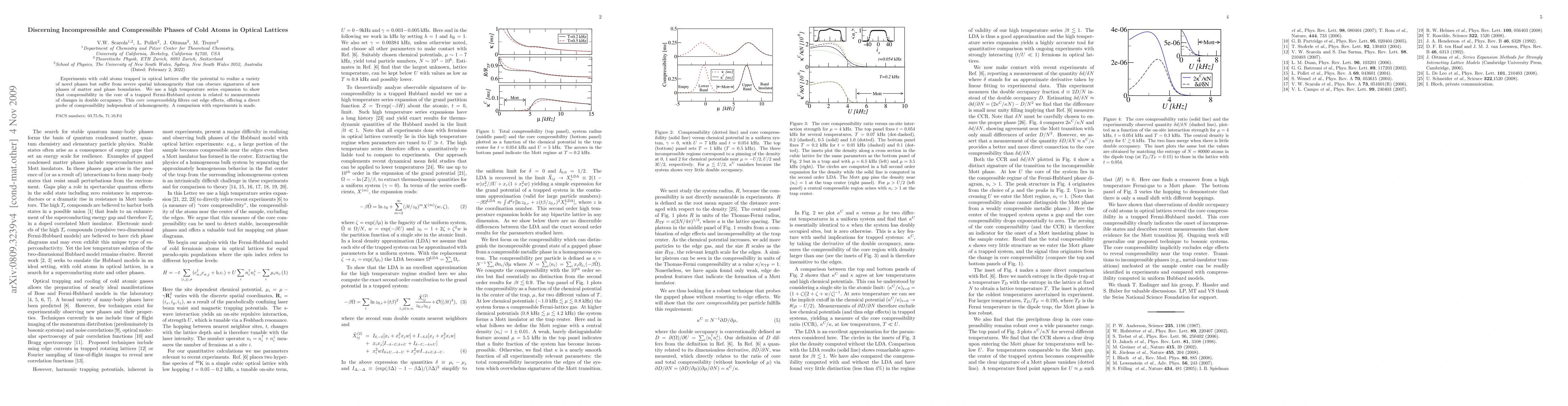 Experiments with cold atoms trapped in optical lattices offer the potential to realize a variety of novel phases but suffer from severe spatial inhomogeneity that can obscure signatures of new phases of matter and phase boundaries. We use a high temperature series expansion to show that compressibility in the core of a trapped Fermi-Hubbard system is related to measurements of changes in double occupancy. This core compressibility filters out edge effects, offering a direct probe of compressibility independent of inhomogeneity. A comparison with experiments is made.