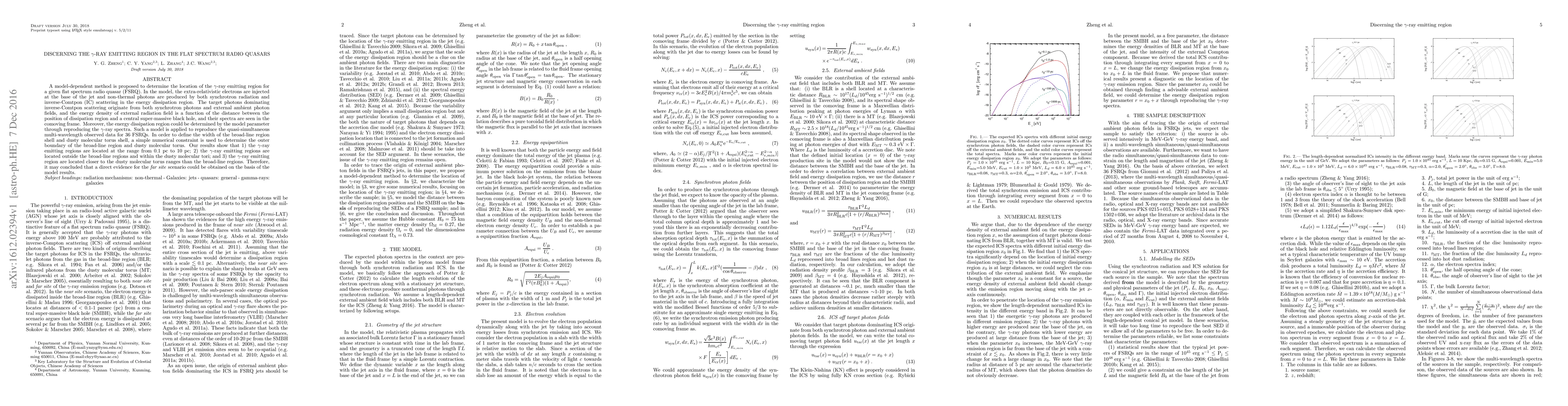 A model-dependent method is proposed to determine the location of the $\gamma$-ray emitting region for a given flat spectrum radio quasar (FSRQ). In the model, the extra-relativistic electrons are injected at the base of the jet and non-thermal photons are produced by both synchrotron radiation and inverse-Comtpon (IC) scattering in the energy dissipation region. The target photons dominating inverse-Comtpon scattering originate from both synchrotron photons and external ambient photon fields, and the energy density of external radiation field is a function of the distance between the position of dissipation region and a central super-massive black hole, and their spectra are seen in the comoving frame. Moreover, the energy dissipation region could be determined by the model parameter through reproducing the $\gamma$-ray spectra. Such a model is applied to reproduce the quasi-simultaneous multi-wavelength observed data for 36 FSRQs. In order to define the width of the broad-line region shell and dusty molecular torus shell, a simple numerical constraint is used to determine the outer boundary of the broad-line region and dusty molecular torus. Our results show that 1) the $\gamma$-ray emitting regions are located at the range from 0.1 pc to 10 pc; 2) the $\gamma$-ray emitting regions are located outside the broad-line regions and within the dusty molecular tori; and 3) the $\gamma$-ray emitting region are located closer to the dusty molecular torus ranges than the broad-line regions. Therefore, it may concluded that a direct evidence for the \emph{far site} scenario could be obtained on the basis of the model results.