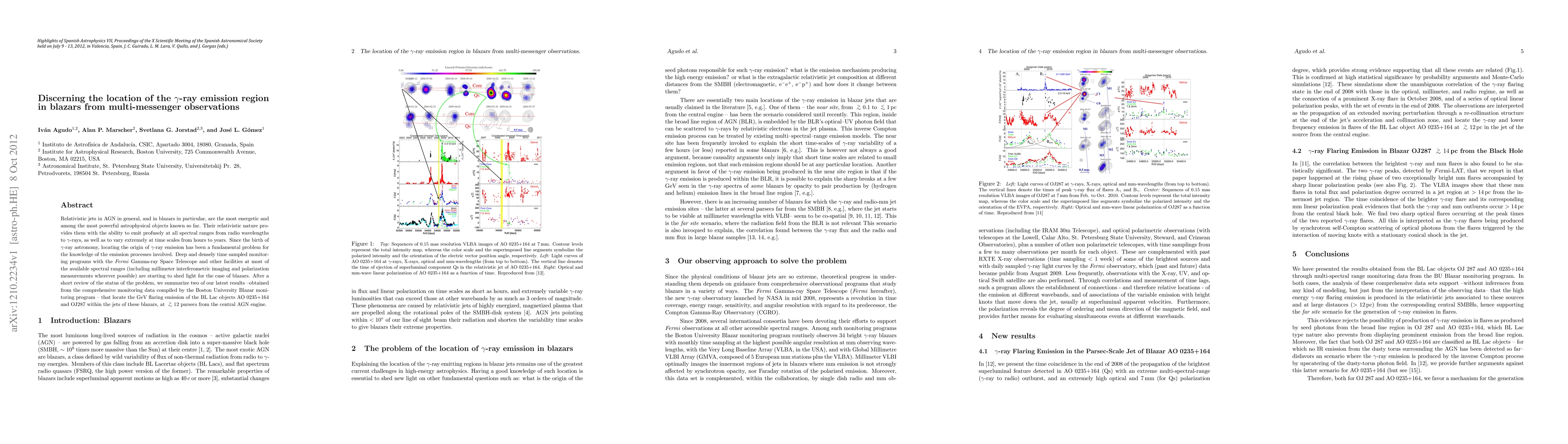 This research uses multi-messenger observations from the Fermi Gamma-ray Space Telescope and other facilities to pinpoint the gamma-ray emission region in blazars, AGN with jets pointing towards Earth. The study finds that for BL Lac objects AO 0235+164 and OJ287, the GeV flaring emission originates within their jets, at over 12 parsecs from the central AGN engine.