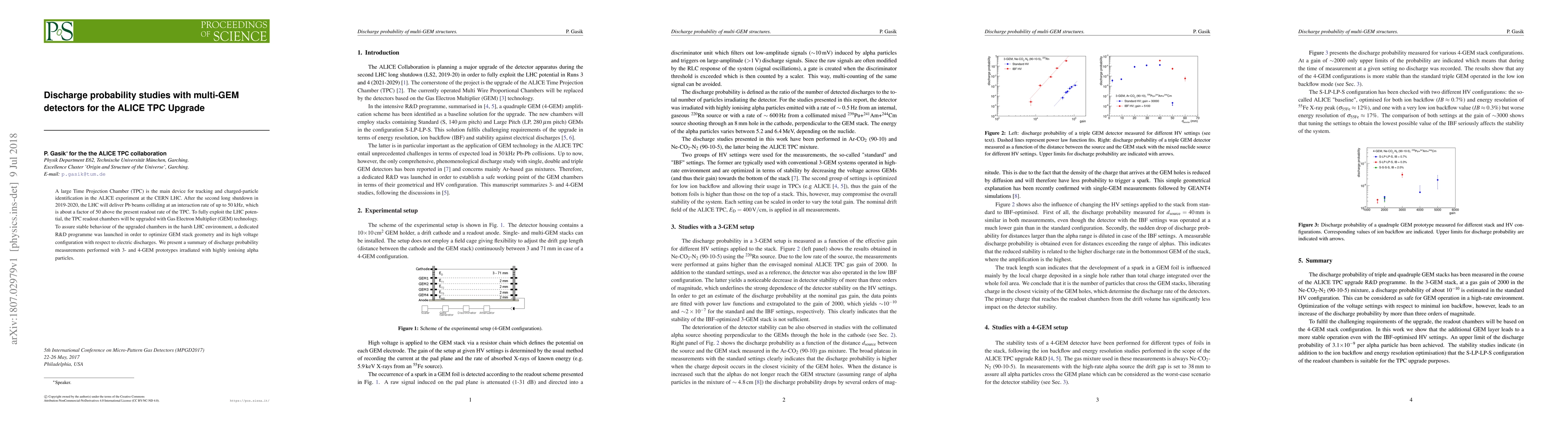 This paper discusses the optimization of Gas Electron Multiplier (GEM) stacks for the ALICE TPC upgrade, focusing on discharge probability studies using multi-GEM detectors. The research aims to ensure stable operation under high interaction rates in the LHC environment, presenting results from discharge probability measurements with 3- and 4-GEM prototypes.