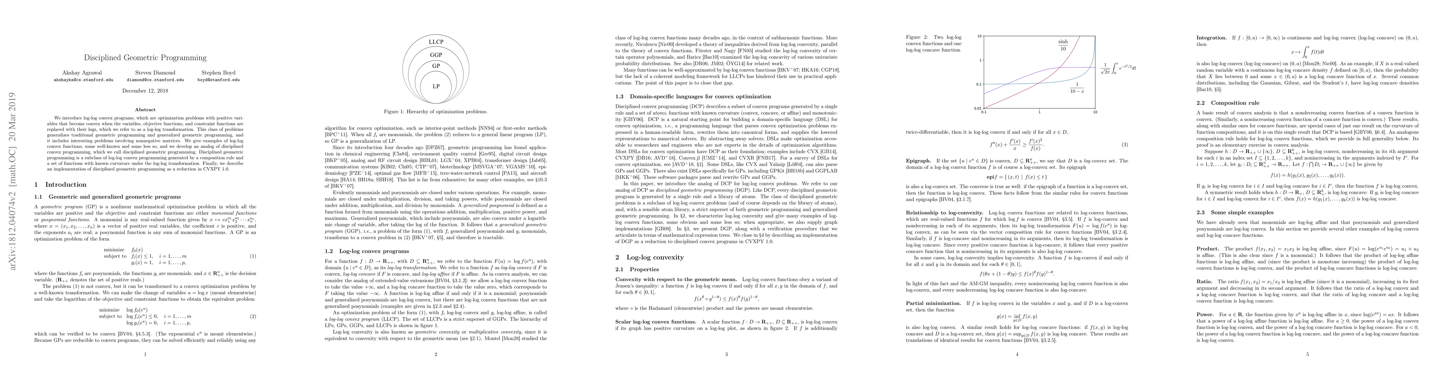 This paper introduces log-log convex programs, a generalization of geometric programming, and develops disciplined geometric programming, a subclass characterized by a composition rule and known curvature functions. It also presents an implementation in CVXPY 1.0.