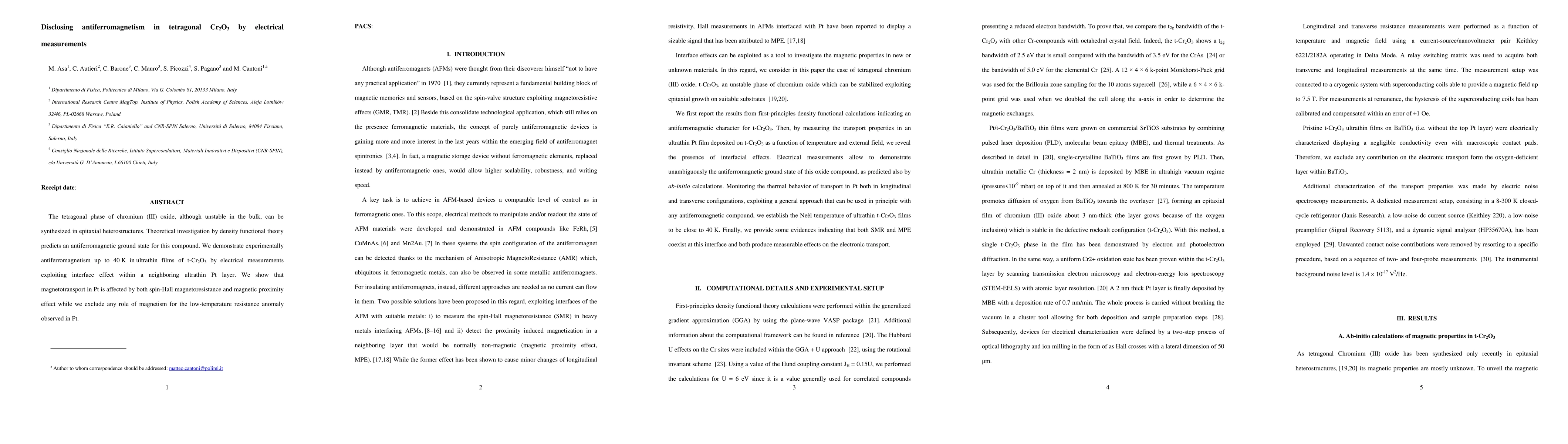 The tetragonal phase of chromium (III) oxide, although unstable in the bulk, can be synthesized in epitaxial heterostructures. The theoretical investigation by density functional theory predicts an antiferromagnetic ground state for this compound. We demonstrate experimentally antiferromagnetism up to 40 K in ultrathin films of t-Cr2O3 by electrical measurements exploiting interface effect within a neighboring ultrathin Pt layer. We show that magnetotransport in Pt is affected by both spin-Hall magnetoresistance and magnetic proximity effect while we exclude any role of magnetism for the low-temperature resistance anomaly observed in Pt.