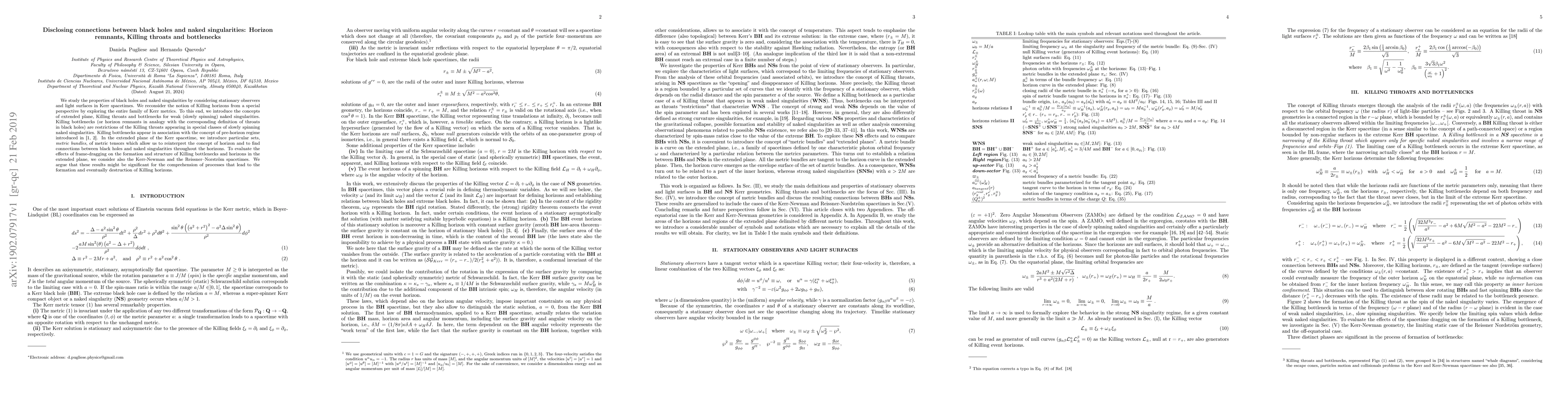 This paper explores the properties of black holes and naked singularities in Kerr spacetimes, introducing concepts like Killing throats and bottlenecks to reveal connections between them. It examines the formation and structure of these features, considering frame-dragging effects in Kerr-Newman and Reissner-Norstrom spacetimes, aiming to enhance understanding of horizon dynamics.