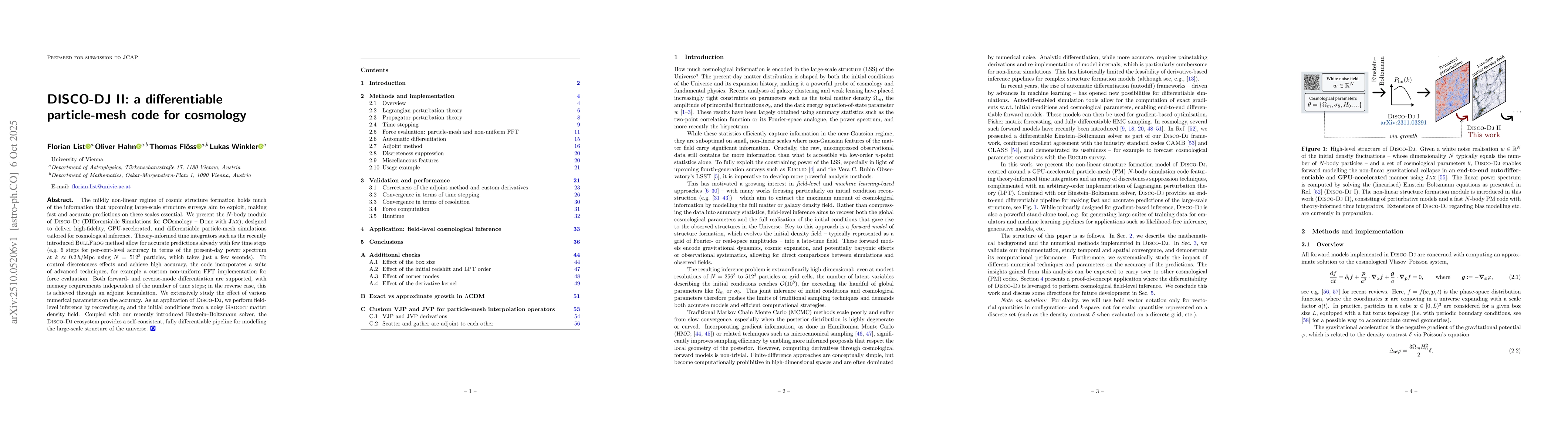 The mildly non-linear regime of cosmic structure formation holds much of the information that upcoming large-scale structure surveys aim to exploit, making fast and accurate predictions on these scales essential. We present the $N$-body module of DISCO-DJ (DIfferentiable Simulations for COsmology - Done with Jax), designed to deliver high-fidelity, GPU-accelerated, and differentiable particle-mesh simulations tailored for cosmological inference. Theory-informed time integrators such as the recently introduced BullFrog method allow for accurate predictions already with few time steps (e.g. $6$ steps for per-cent-level accuracy in terms of the present-day power spectrum at $k \approx 0.2 \, h / \mathrm{Mpc}$ using $N = 512^3$ particles, which takes just a few seconds). To control discreteness effects and achieve high accuracy, the code incorporates a suite of advanced techniques, for example a custom non-uniform FFT implementation for force evaluation. Both forward- and reverse-mode differentiation are supported, with memory requirements independent of the number of time steps; in the reverse case, this is achieved through an adjoint formulation. We extensively study the effect of various numerical parameters on the accuracy. As an application of DISCO-DJ, we perform field-level inference by recovering $\sigma_8$ and the initial conditions from a noisy Gadget matter density field. Coupled with our recently introduced Einstein--Boltzmann solver, the DISCO-DJ ecosystem provides a self-consistent, fully differentiable pipeline for modelling the large-scale structure of the universe. The code is available at https://github.com/cosmo-sims/DISCO-DJ.