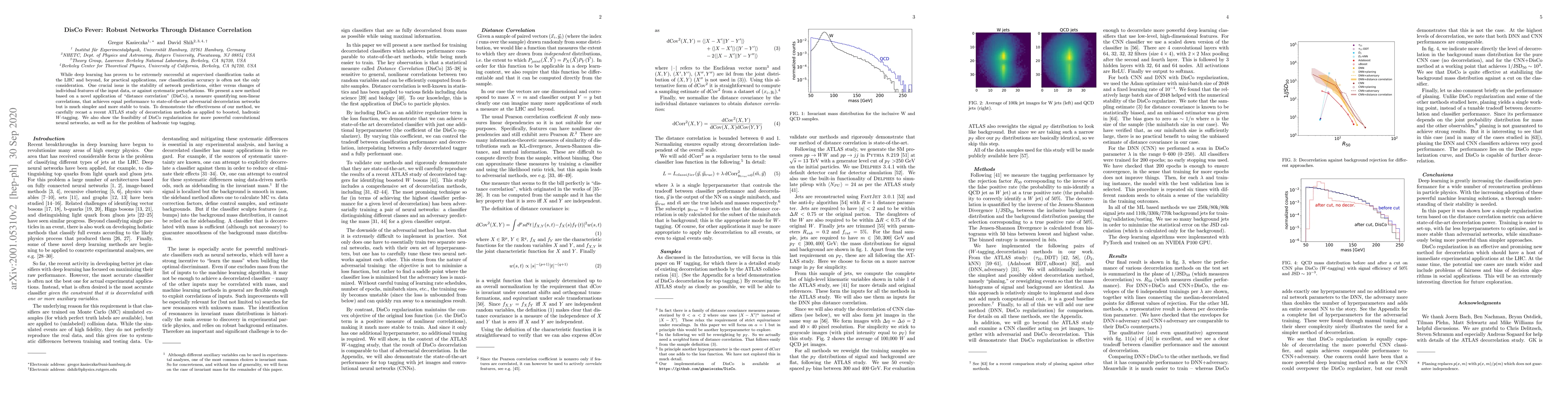 This paper introduces DisCo, a novel method using distance correlation to enhance the stability of deep learning networks, achieving comparable performance to state-of-the-art adversarial decorrelation networks while being simpler and more stable to train. The method is demonstrated through its application to hadronic W-tagging and top tagging in the ATLAS study.