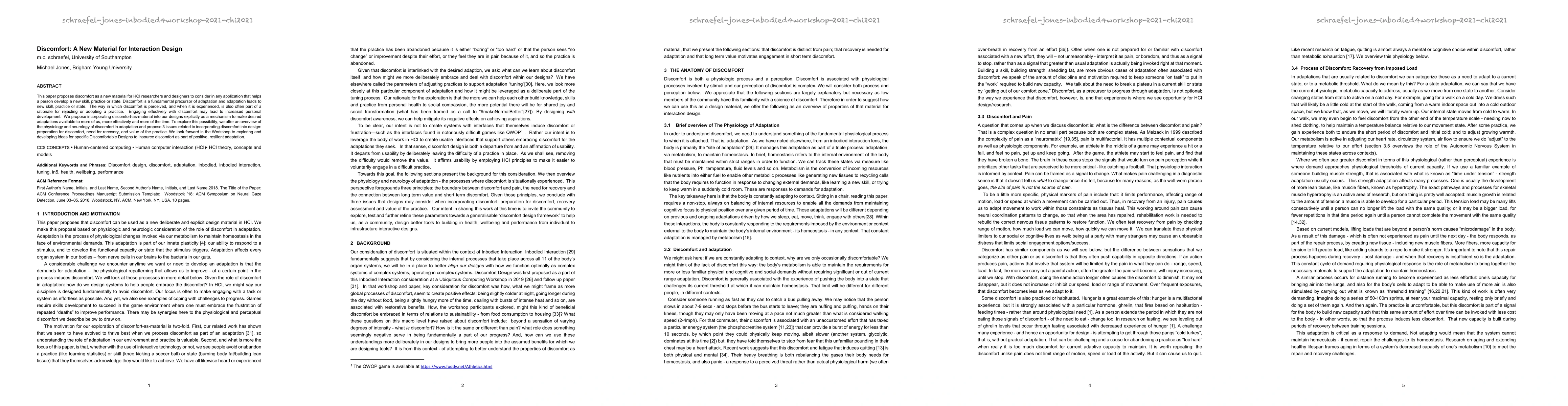 Researchers propose incorporating discomfort as a material into design to facilitate personal development through adaptation, exploring its role in skill development and practice adoption.