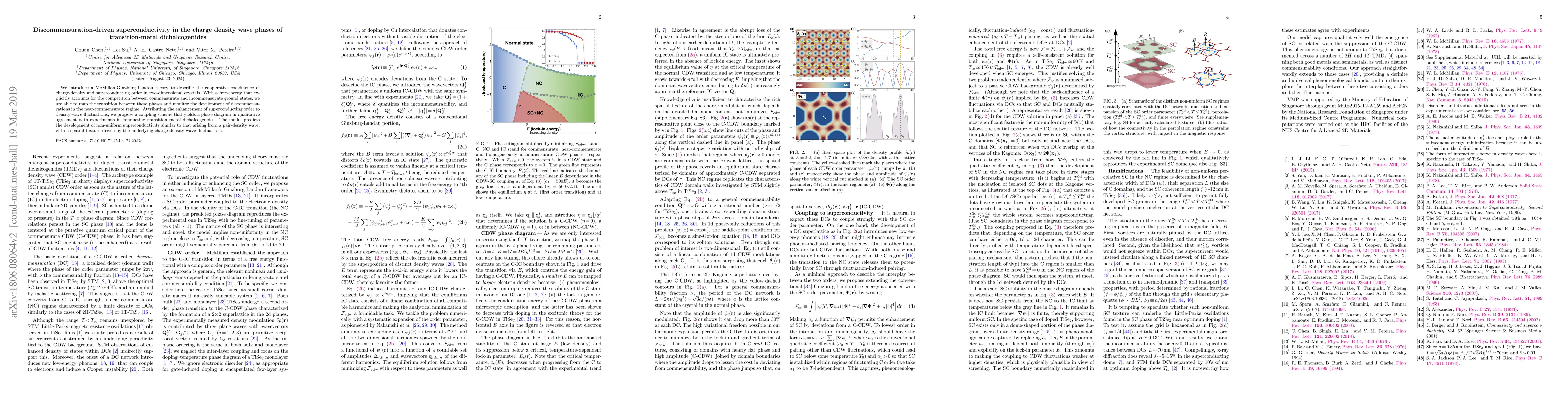 This paper proposes a McMillan-Ginzburg-Landau theory to explain the coexistence of charge-density and superconducting order in transition-metal dichalcogenides, attributing the superconductivity enhancement to charge-density wave fluctuations and predicting non-uniform superconductivity driven by discommensurations. The model aligns with experimental observations in these materials.