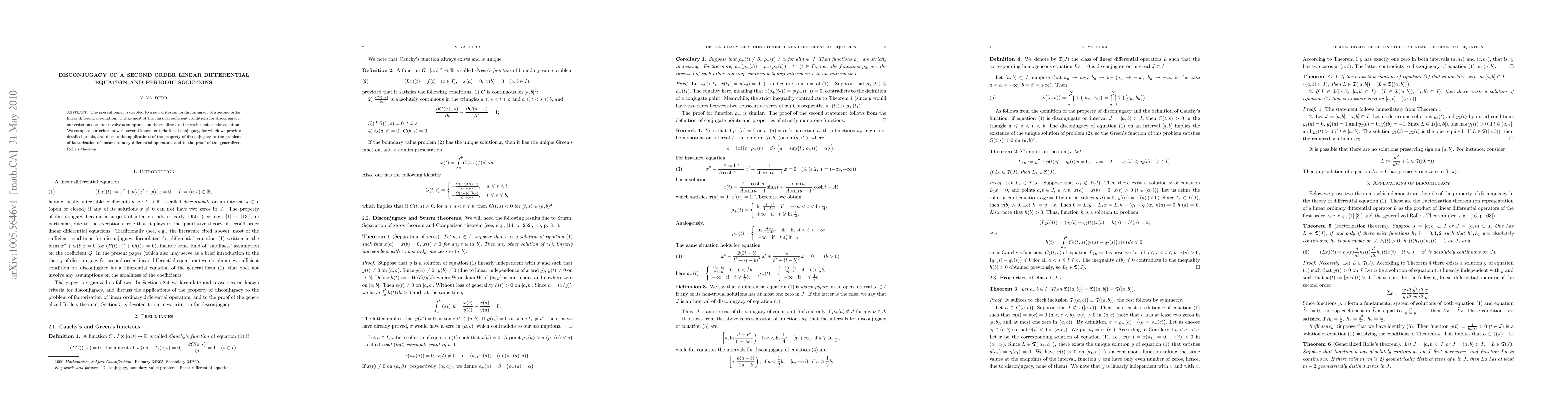 Researchers developed a new criterion for disconjugacy of second-order linear differential equations without relying on small coefficient assumptions. This innovation has implications for factorization of linear ordinary differential operators and the proof of generalized Rolle's theorem.