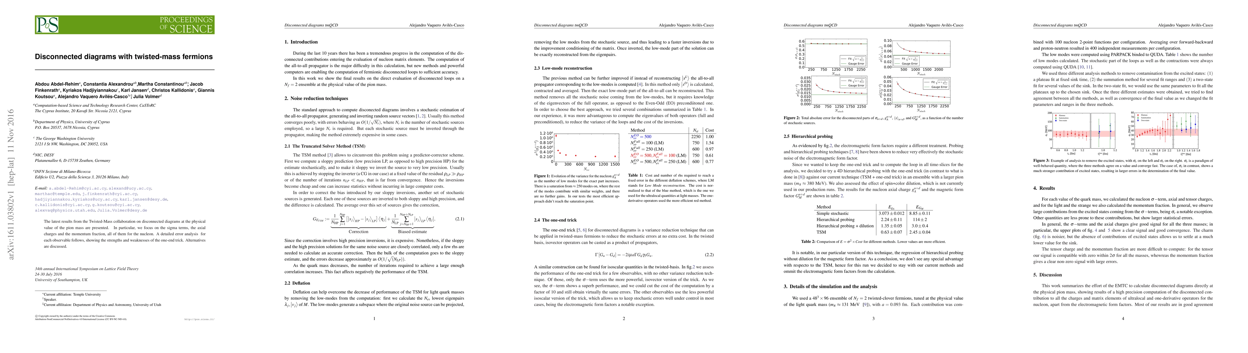 Researchers from the Twisted-Mass collaboration present results on disconnected diagrams for nucleons using twisted-mass fermions, focusing on sigma terms, axial charges, and momentum fractions with detailed error analysis.