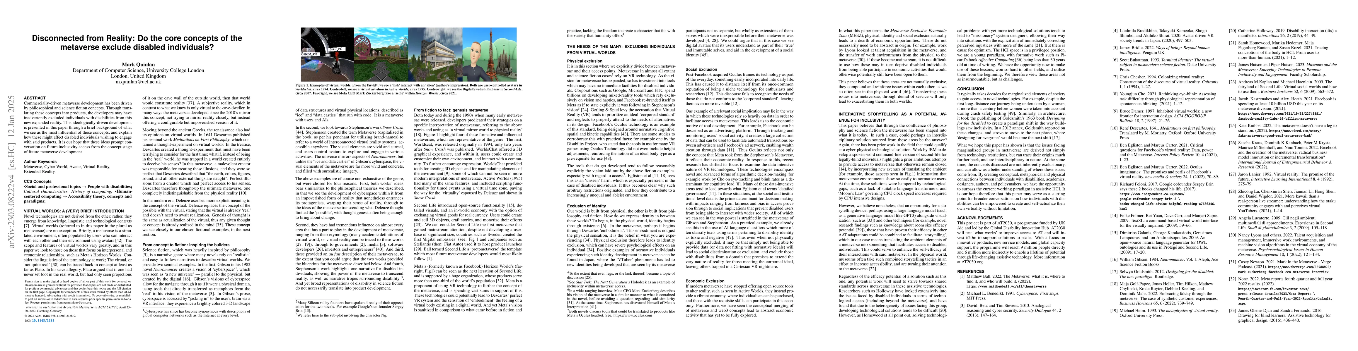 Commercially-driven metaverse development has been driven by philosophical and science fiction concepts. Through translating these concepts into products, the developers may have inadvertently excluded individuals with disabilities from this new expanded reality. This ideologically-driven development is presented in this paper through a brief background of what we see as the most influential of these concepts, and explain how these might affect disabled individuals wishing to engage with said products. It is our hope that these ideas prompt conversation on future inclusivity access from the concept stage of future metaverse development.