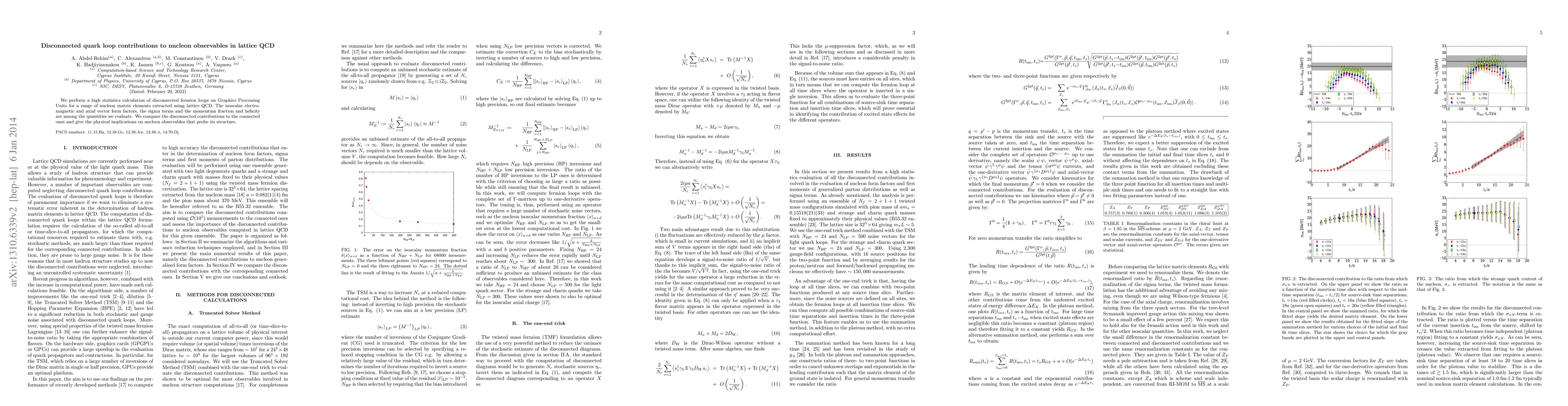 This study calculates disconnected quark loop contributions on GPUs for various nucleon matrix elements in lattice QCD, including electromagnetic and axial vector form factors, sigma-terms, and momentum fraction and helicity. The research compares disconnected to connected contributions, highlighting their implications for nucleon structure observables.