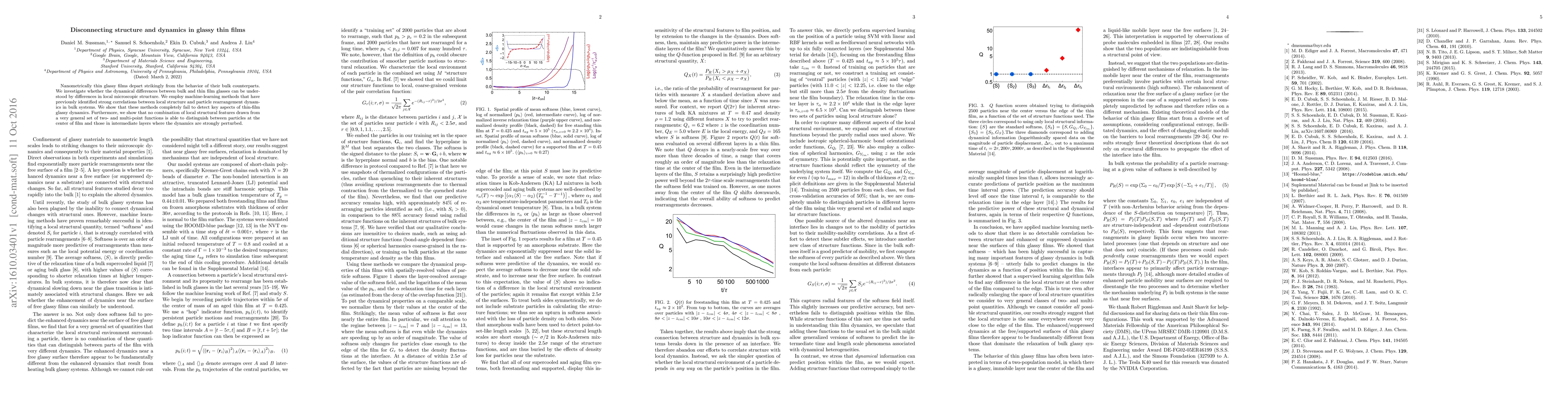 Nanometrically thin glassy films depart strikingly from the behavior of their bulk counterparts. We investigate whether the dynamical differences between bulk and thin film glasses can be understood by differences in local microscopic structure. We employ machine-learning methods that have previously identified strong correlations between local structure and particle rearrangement dynamics in bulk systems. We show that these methods completely fail to detect key aspects of thin-film glassy dynamics. Furthermore, we show that no combination of local structural features drawn from a very general set of two- and multi-point functions is able to distinguish between particles at the center of film and those in intermediate layers where the dynamics are strongly perturbed.