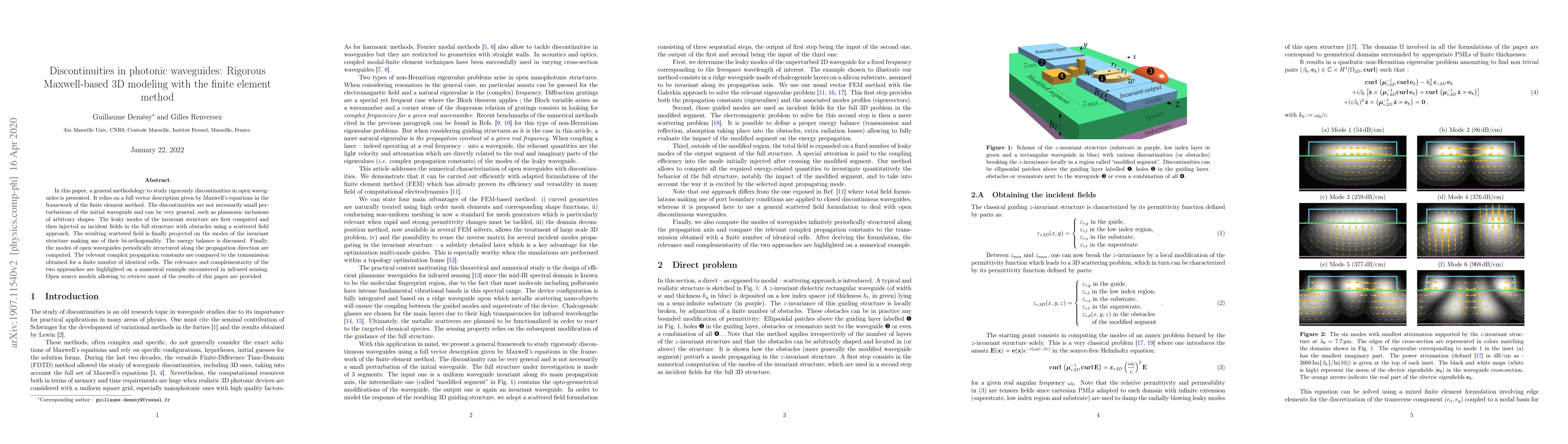 Researchers developed a method to study discontinuities in open photonic waveguides using 3D modeling and the finite element method, enabling accurate computation of leaky modes and complex propagation constants.