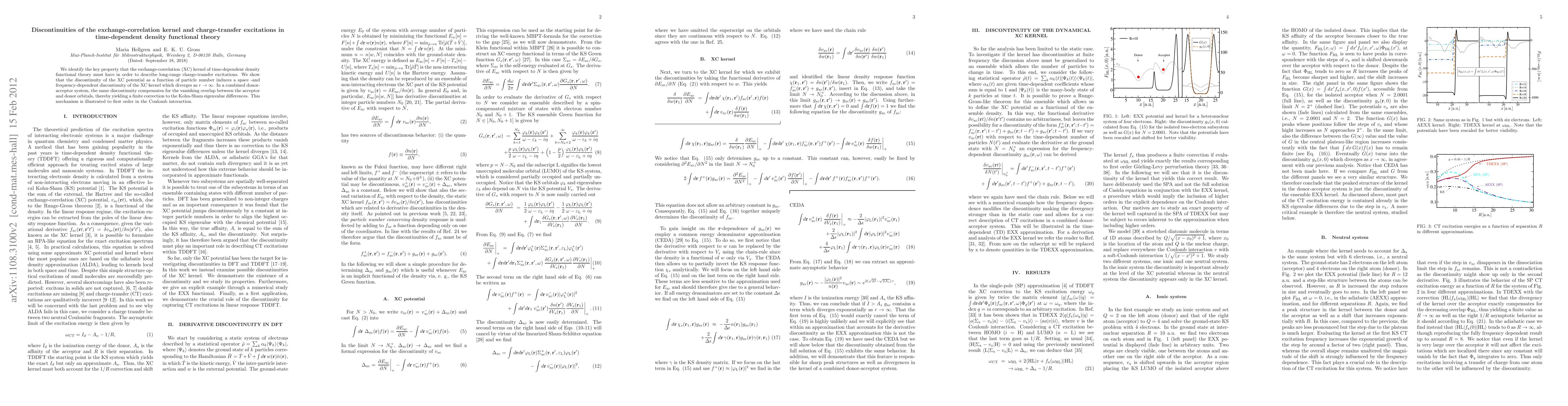 This paper identifies the discontinuity in the exchange-correlation kernel essential for describing long-range charge-transfer excitations in time-dependent density functional theory. It reveals that this discontinuity compensates for the vanishing overlap in donor-acceptor systems, providing a finite correction to Kohn-Sham eigenvalue differences.