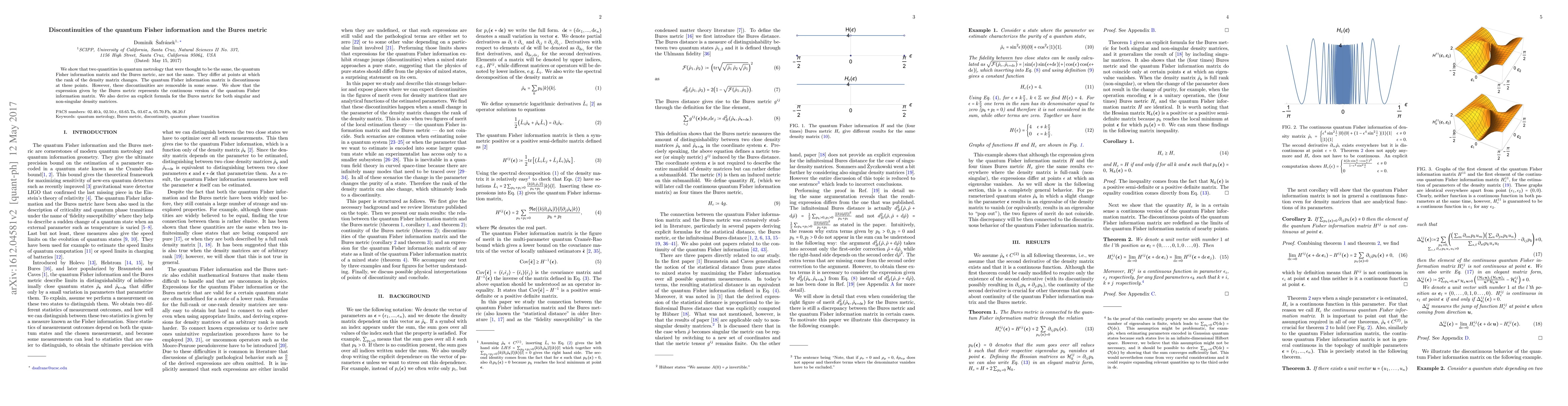We show that two quantities in quantum metrology that were thought to be the same, the quantum Fisher information matrix and the Bures metric, are not the same. They differ at points at which the rank of the density matrix changes. The quantum Fisher information matrix is discontinuous at these points. However, these discontinuities are removable in some sense. We show that the expression given by the Bures metric represents the continuous version of the quantum Fisher information matrix. We also derive an explicit formula for the Bures metric for both singular and non-singular density matrices.