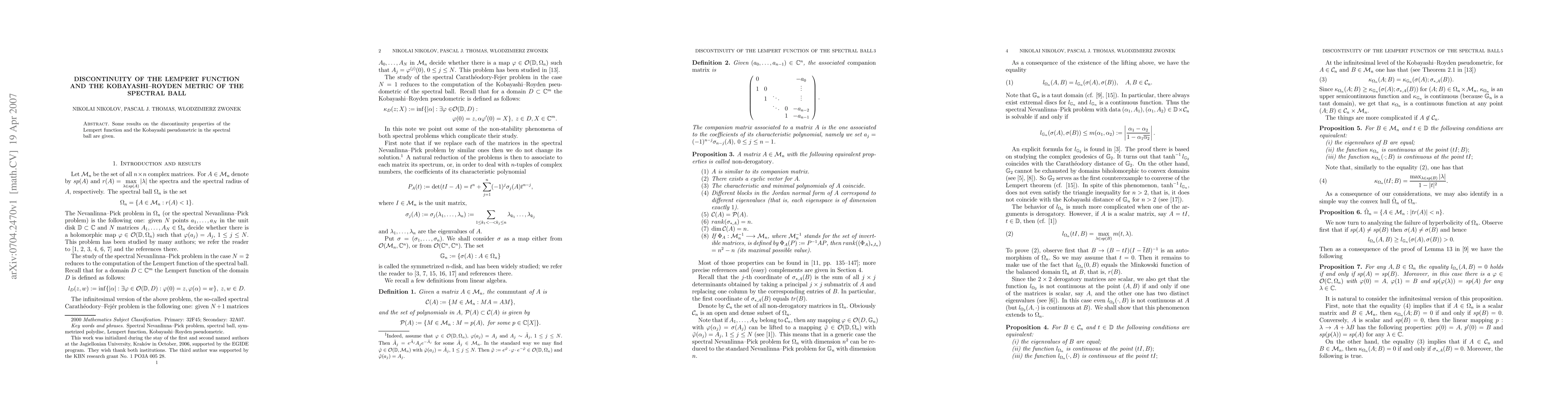 Summary: This paper investigates the discontinuity characteristics of the Lempert function and the Kobayashi-Royden metric within the spectral ball, providing insights into their behavior and properties.