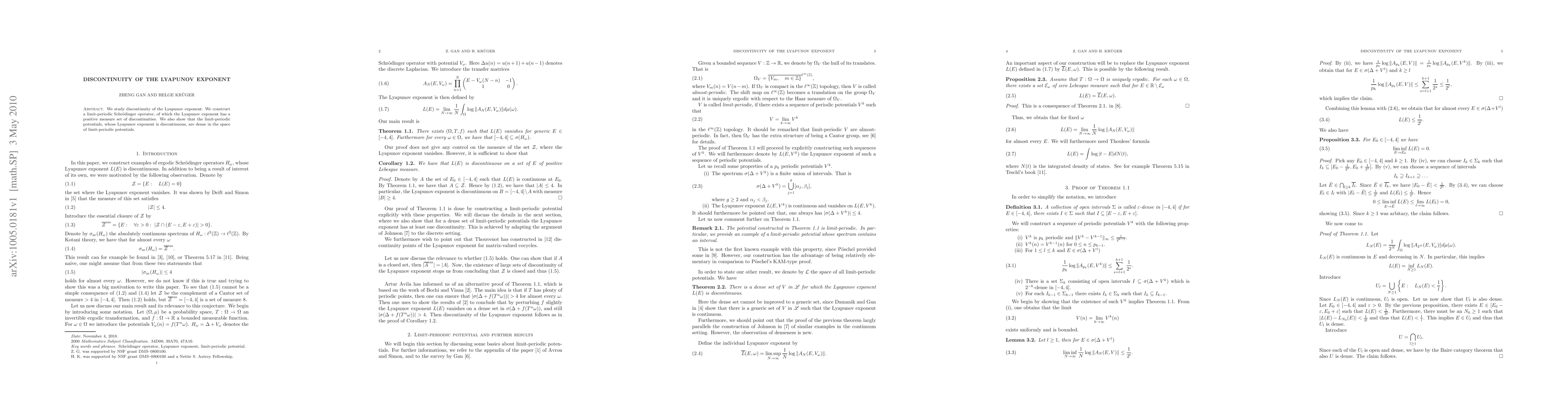 We study discontinuity of the Lyapunov exponent. We construct a limit-periodic Schr\"odinger operator, of which the Lyapunov exponent has a positive measure set of discontinuities. We also show that the limit-periodic potentials, whose Lyapunov exponent is discontinuous, are dense in the space of limit-periodic potentials.