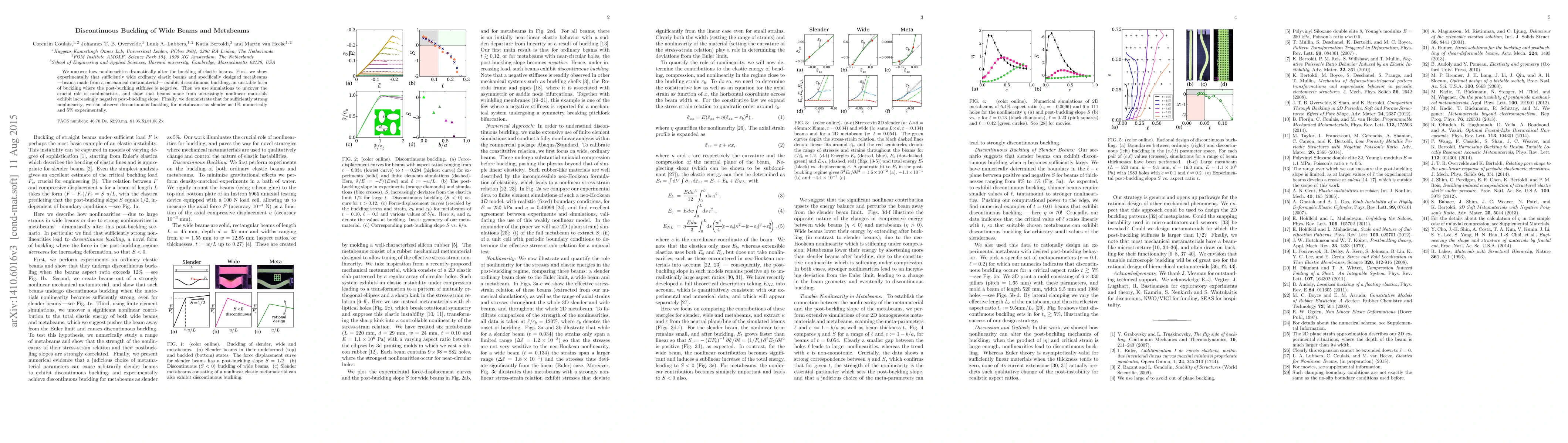 The paper presents a detailed analysis of discontinuous buckling in wide beams and metabeams, combining experimental validation with nonlinear finite element simulations, and introduces a method to quantify the role of nonlinearity in post-buckling behavior.