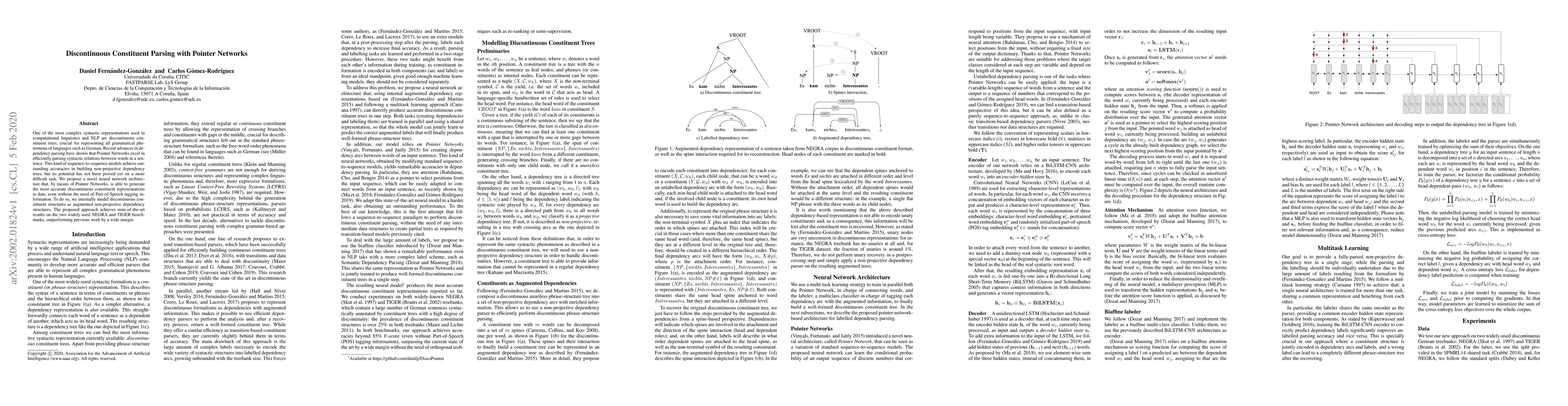 The paper proposes a novel neural network architecture using Pointer Networks to accurately parse discontinuous constituent structures in sentences, achieving state-of-the-art results on NEGRA and TIGER benchmarks without relying on Part-of-Speech tagging.