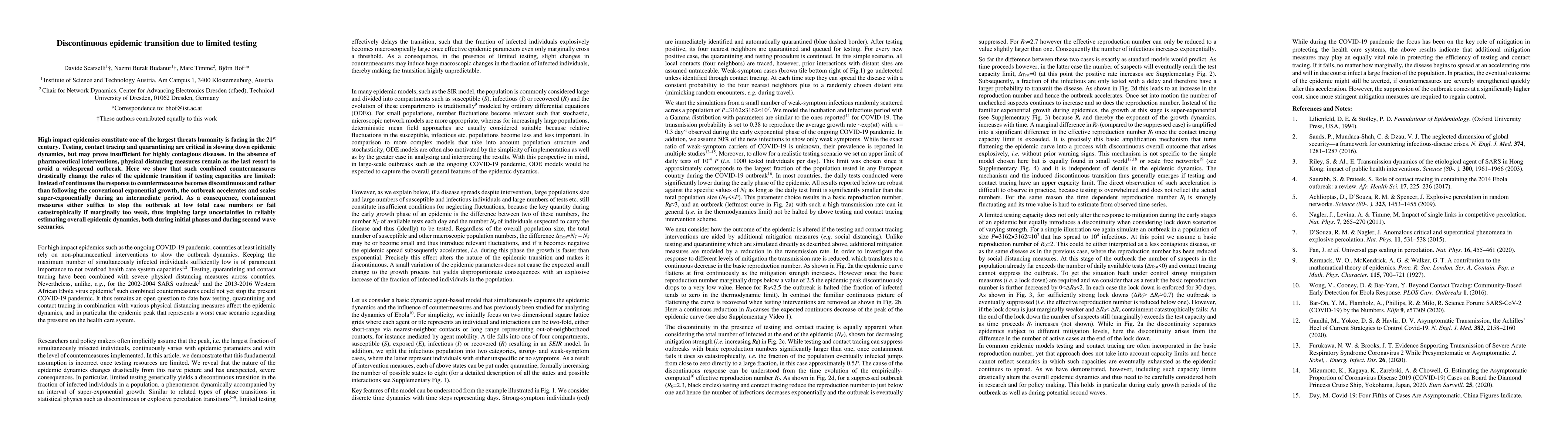 Limited testing capacities can drastically change epidemic dynamics, leading to discontinuous transitions and super-exponential growth during an intermediate period, with containment measures sometimes succeeding or failing catastrophically.