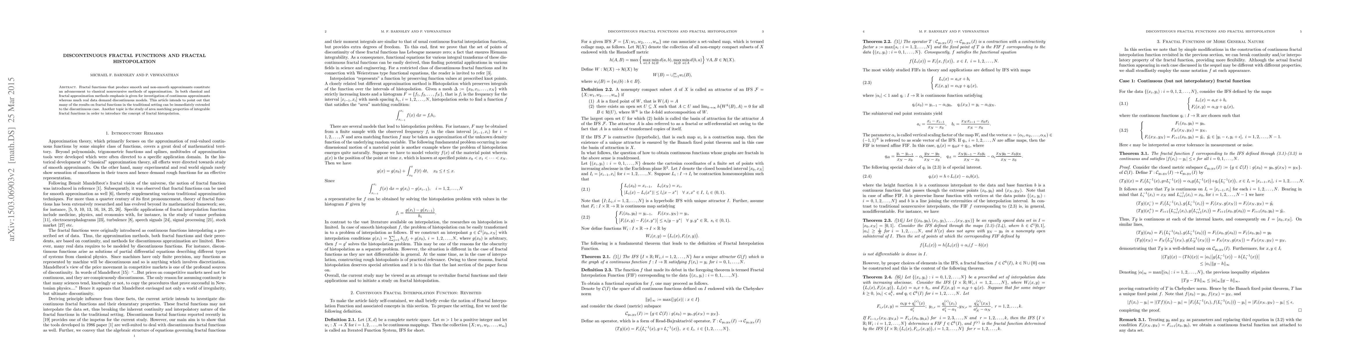 Fractal functions that produce smooth and non-smooth approximants constitute an advancement to classical nonrecursive methods of approximation. In both classical and fractal approximation methods emphasis is given for investigation of continuous approximants whereas much real data demand discontinuous models. This article intends to point out that many of the results on fractal functions in the traditional setting can be immediately extended to the discontinuous case. Another topic is the study of area matching properties of integrable fractal functions in order to introduce the concept of fractal histopolation.