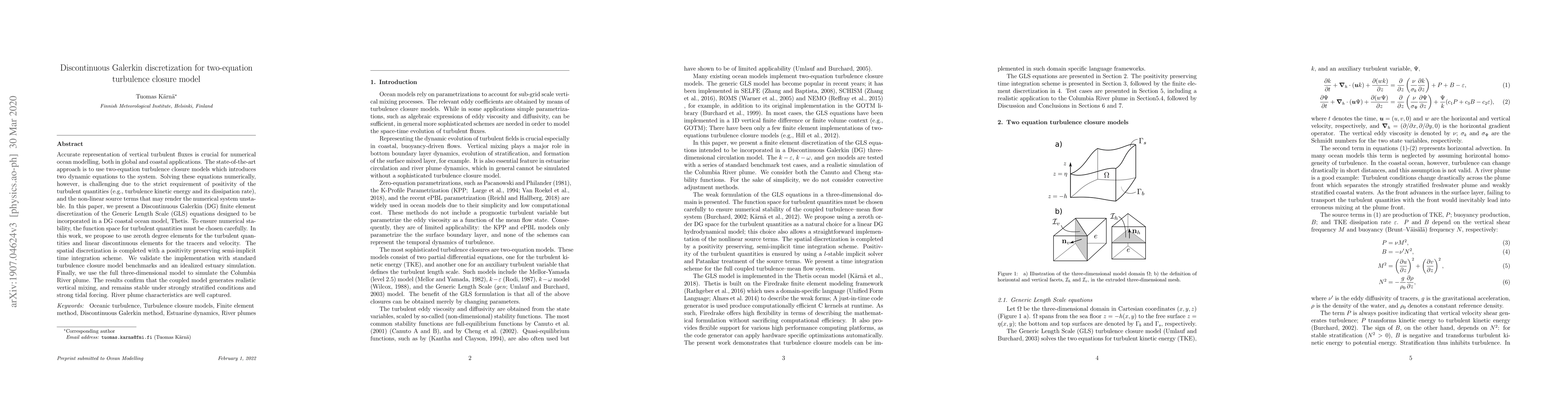 A new Discontinuous Galerkin discretization method is proposed for two-equation turbulence closure models to improve ocean modeling accuracy and stability.