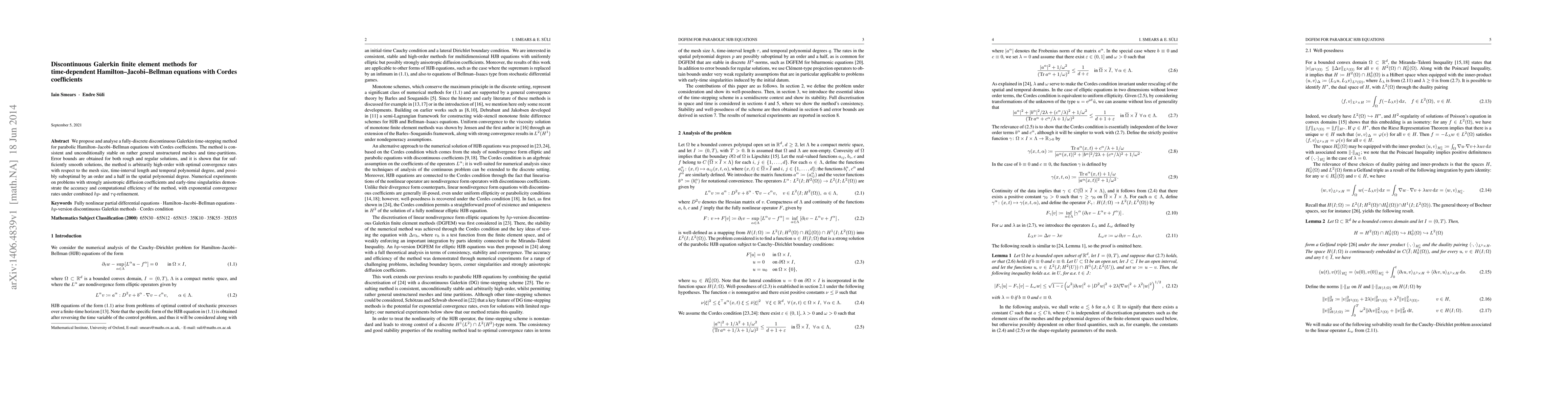 We propose and analyse a fully-discrete discontinuous Galerkin time-stepping method for parabolic Hamilton--Jacobi--Bellman equations with Cordes coefficients. The method is consistent and unconditionally stable on rather general unstructured meshes and time-partitions. Error bounds are obtained for both rough and regular solutions, and it is shown that for sufficiently smooth solutions, the method is arbitrarily high-order with optimal convergence rates with respect to the mesh size, time-interval length and temporal polynomial degree, and possibly suboptimal by an order and a half in the spatial polynomial degree. Numerical experiments on problems with strongly anisotropic diffusion coefficients and early-time singularities demonstrate the accuracy and computational efficiency of the method, with exponential convergence rates under combined $hp$- and $\tau q$-refinement.