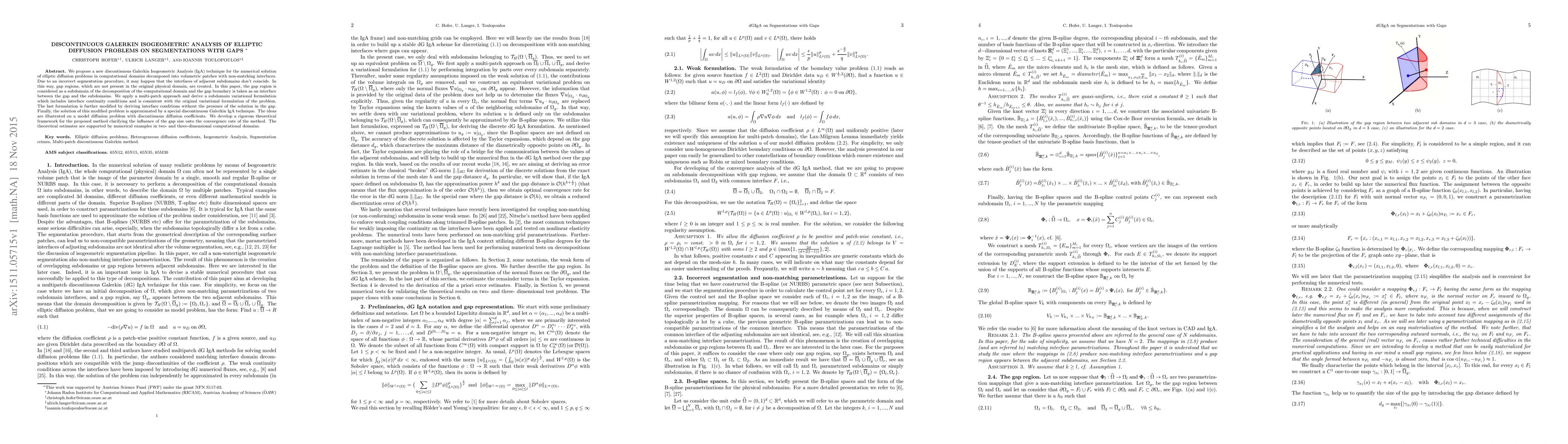 This paper introduces a discontinuous Galerkin Isogeometric Analysis technique for solving elliptic diffusion problems on segmented domains with non-matching interfaces, treating gaps as subdomains. It develops a multi-patch variational formulation and a modified problem to handle gaps, supported by theoretical convergence analysis and numerical examples.