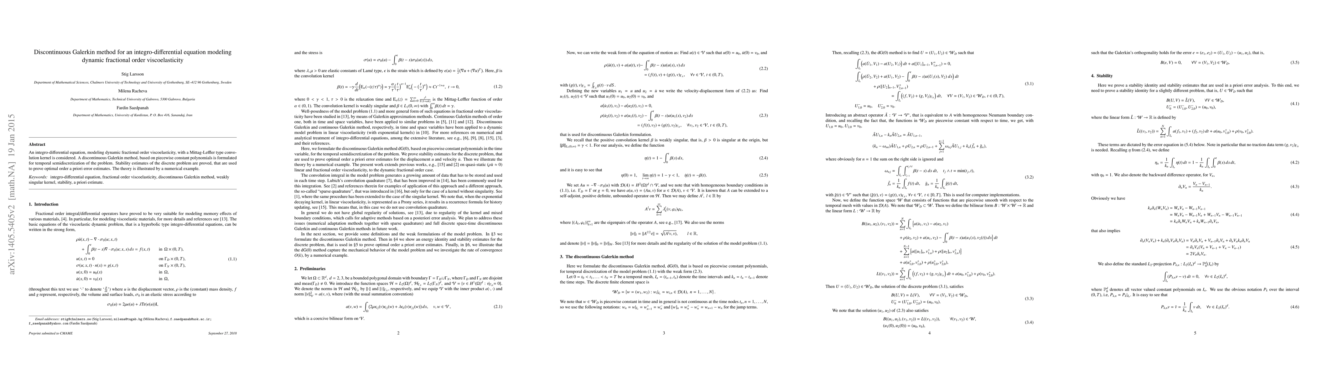 This paper formulates a discontinuous Galerkin method for solving an integro-differential equation modeling dynamic fractional order viscoelasticity. The method proves stability and optimal error estimates, validated through a numerical example.