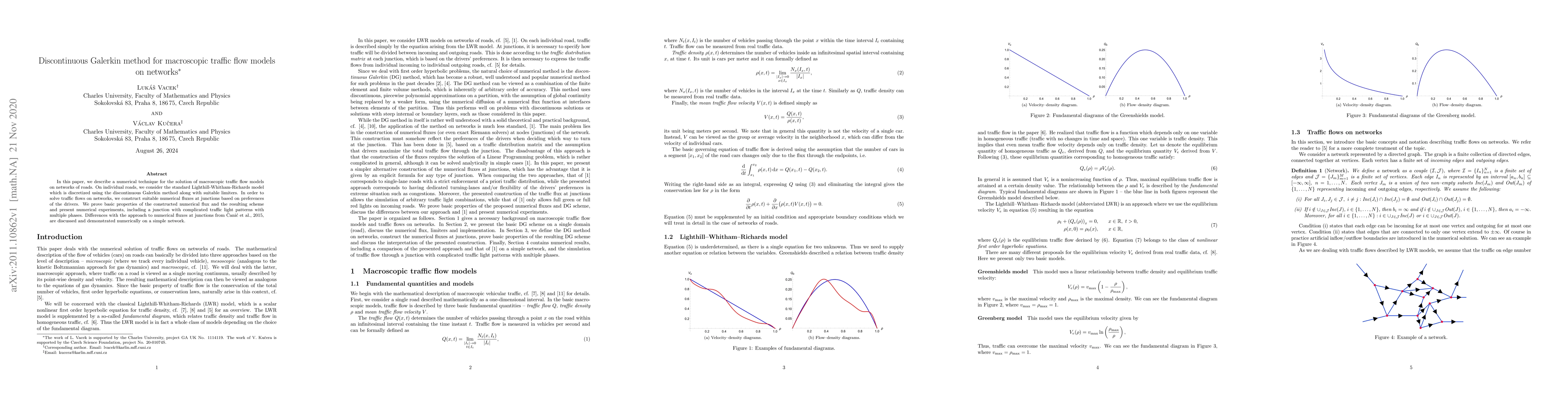 This paper introduces a discontinuous Galerkin method for solving macroscopic traffic flow models on road networks using the Lighthill-Whitham-Richards model, with numerical fluxes at junctions based on driver preferences. It discusses differences from previous methods and demonstrates the approach with numerical experiments on complex traffic light patterns.