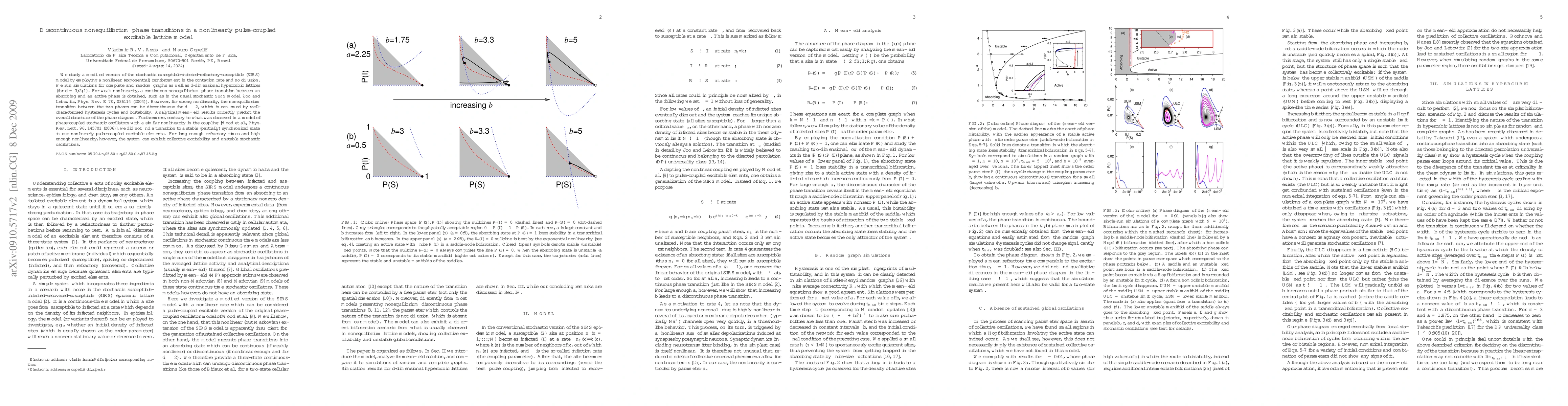 Researchers studied a model of contagious spread with non-linear reinforcement, finding that phase transitions can be continuous or discontinuous in different dimensions, but no stable synchronized state was reached.