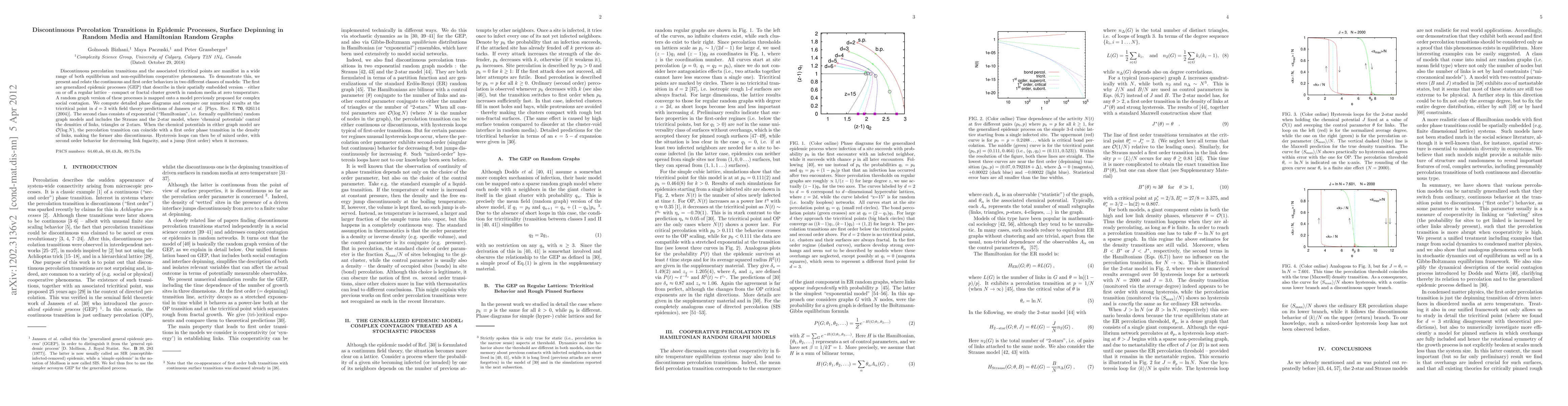 Discontinuous percolation transitions and the associated tricritical points are manifest in a wide range of both equilibrium and non-equilibrium cooperative phenomena. To demonstrate this, we present and relate the continuous and first order behaviors in two different classes of models: The first are generalized epidemic processes (GEP) that describe in their spatially embedded version - either on or off a regular lattice - compact or fractal cluster growth in random media at zero temperature. A random graph version of GEP is mapped onto a model previously proposed for complex social contagion. We compute detailed phase diagrams and compare our numerical results at the tricritical point in d = 3 with field theory predictions of Janssen et al. [Phys. Rev. E 70, 026114 (2004)]. The second class consists of exponential ("Hamiltonian", or formally equilibrium) random graph models and includes the Strauss and the 2-star model, where 'chemical potentials' control the densities of links, triangles or 2-stars. When the chemical potentials in either graph model are O(logN), the percolation transition can coincide with a first order phase transition in the density of links, making the former also discontinuous. Hysteresis loops can then be of mixed order, with second order behavior for decreasing link fugacity, and a jump (first order) when it increases.