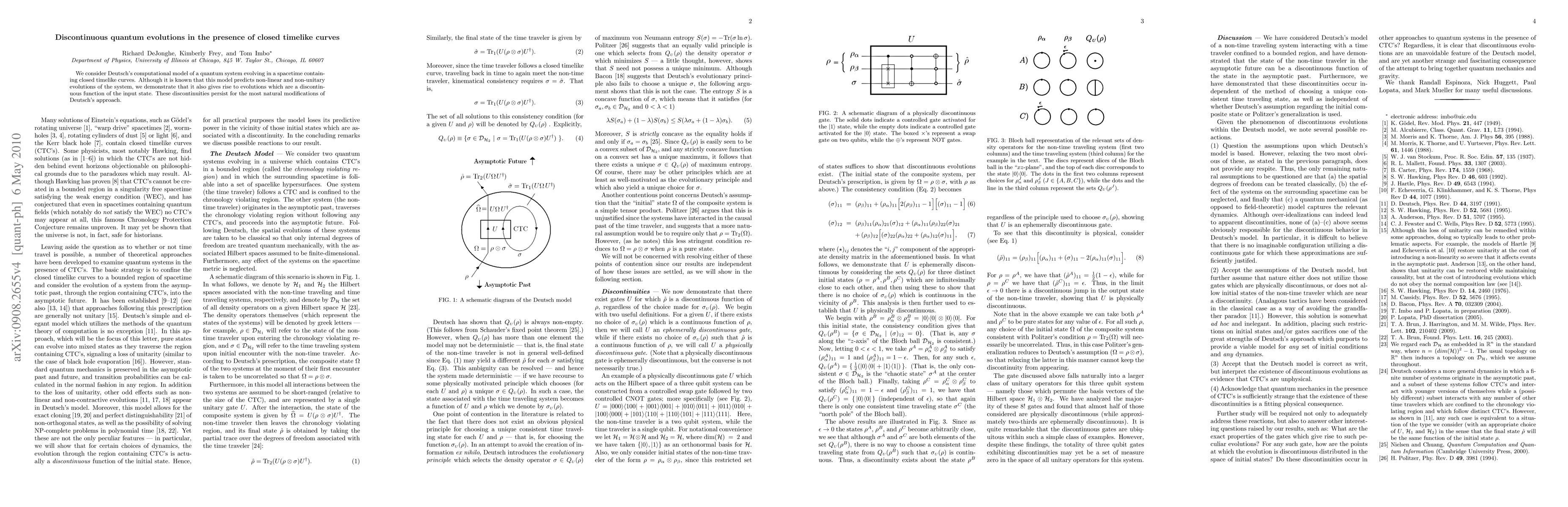 This paper explores quantum evolutions in a spacetime with closed timelike curves, showing that Deutsch's computational model predicts not only non-linear and non-unitary but also discontinuous evolutions, which remain even under natural modifications.