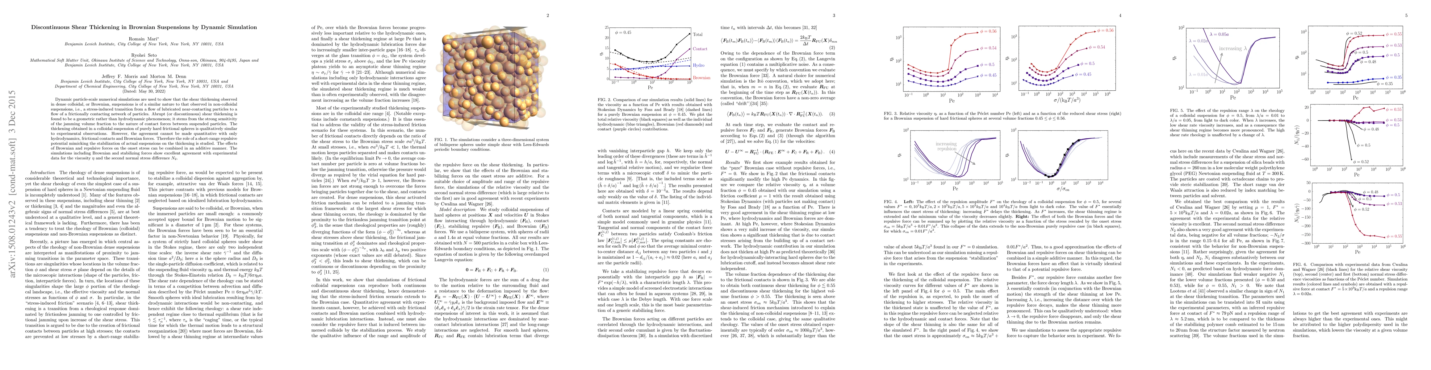 This paper uses dynamic simulations to demonstrate that shear thickening in dense colloidal suspensions shares characteristics with non-colloidal suspensions, driven by a transition from lubricated to frictionally contacting particle networks. The study finds that discontinuous shear thickening is a geometric effect influenced by contact forces, and simulations incorporating Brownian and stabilizing forces match experimental data for viscosity and normal stress differences.