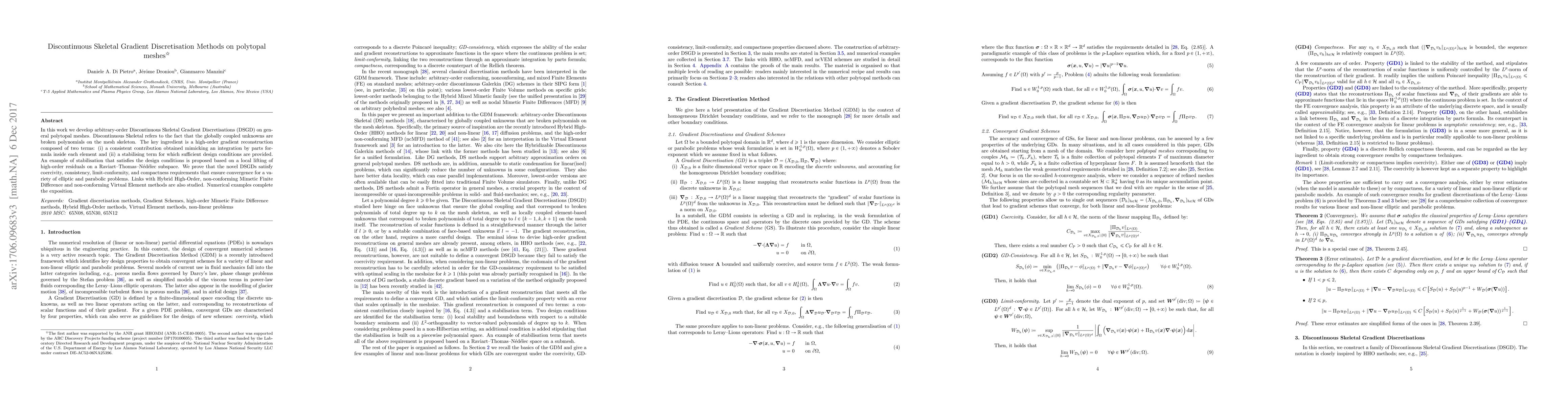This paper develops high-order Discontinuous Skeletal Gradient Discretisations (DSGD) on polytopal meshes, featuring a gradient reconstruction with consistent and stabilising terms, and proves their convergence for various problems. Numerical examples validate the method's effectiveness.