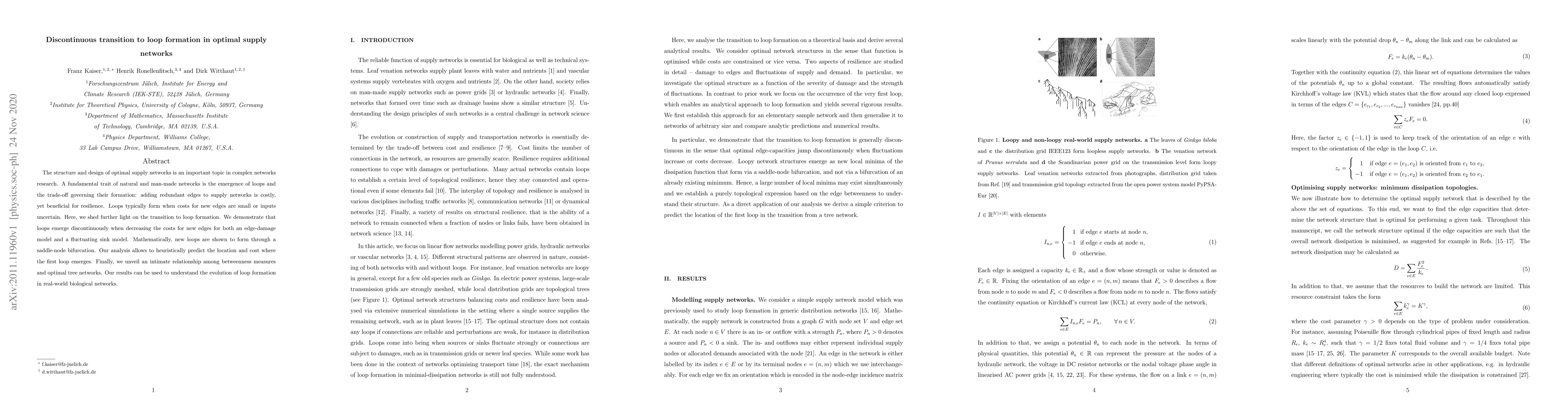 Research reveals that loops in supply networks form discontinuously as costs for new edges decrease, with a specific mathematical model predicting the emergence of the first loop. This discovery sheds light on the transition to loop formation in natural and man-made networks.