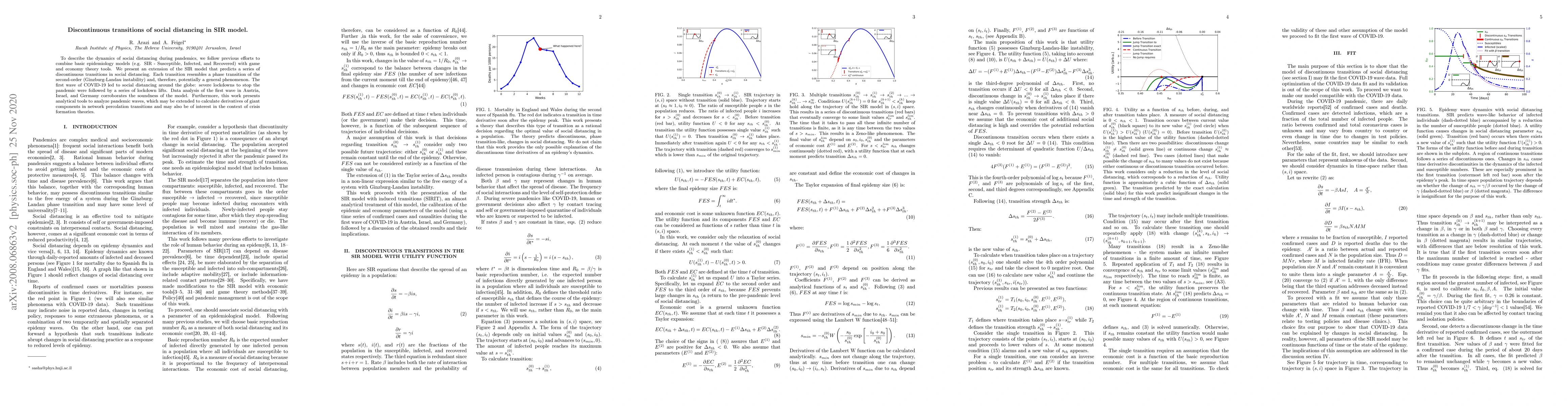 This paper extends the SIR model to incorporate social distancing dynamics, predicting discontinuous transitions akin to second-order phase transitions. Data from Austria, Israel, and Germany validate the model's predictions of social distancing phases during the first wave of COVID-19.