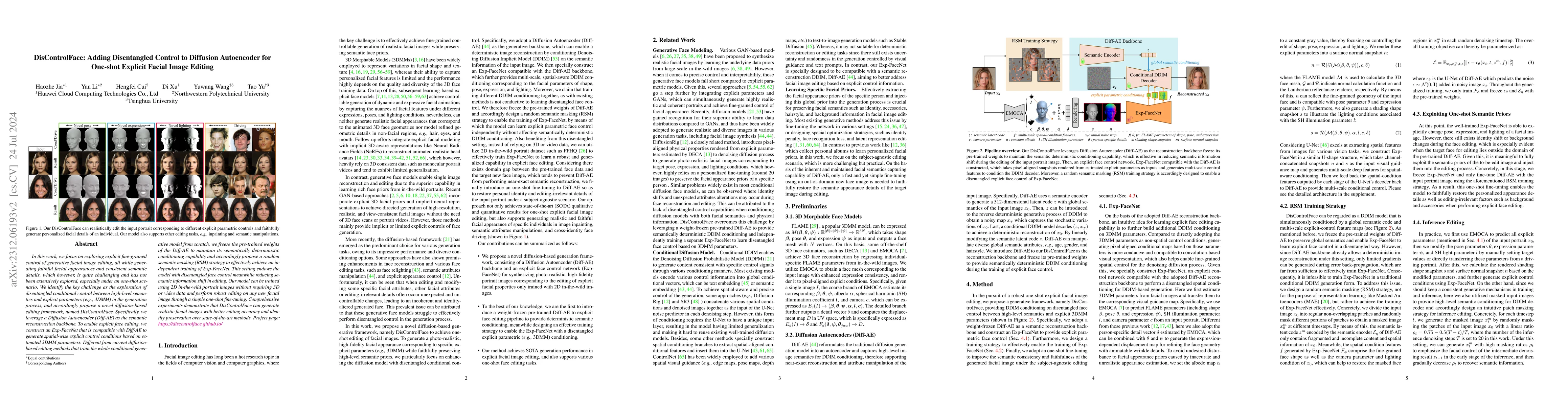 DisControlFace proposes a diffusion-based framework for fine-grained control in generative facial image editing, achieving disentangled conditional control and preserving personalized facial details. The method employs a reconstruction backbone and a parallel control network for robust, personalized facial edits with minimal identity shift.