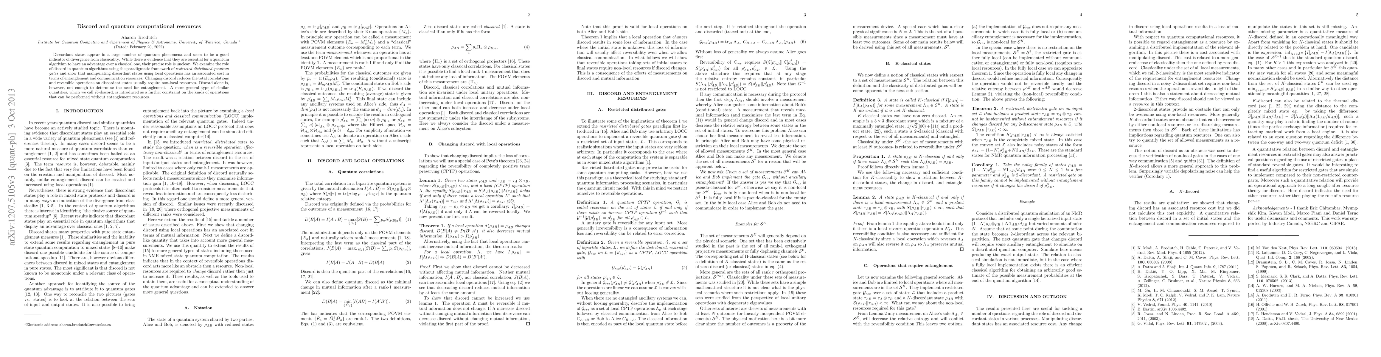 This paper investigates the role of quantum discord in quantum algorithms, demonstrating that manipulating discordant states incurs costs in terms of entanglement and communication. It introduces K-discord as a broader measure to determine the necessity of entanglement resources beyond discord alone.