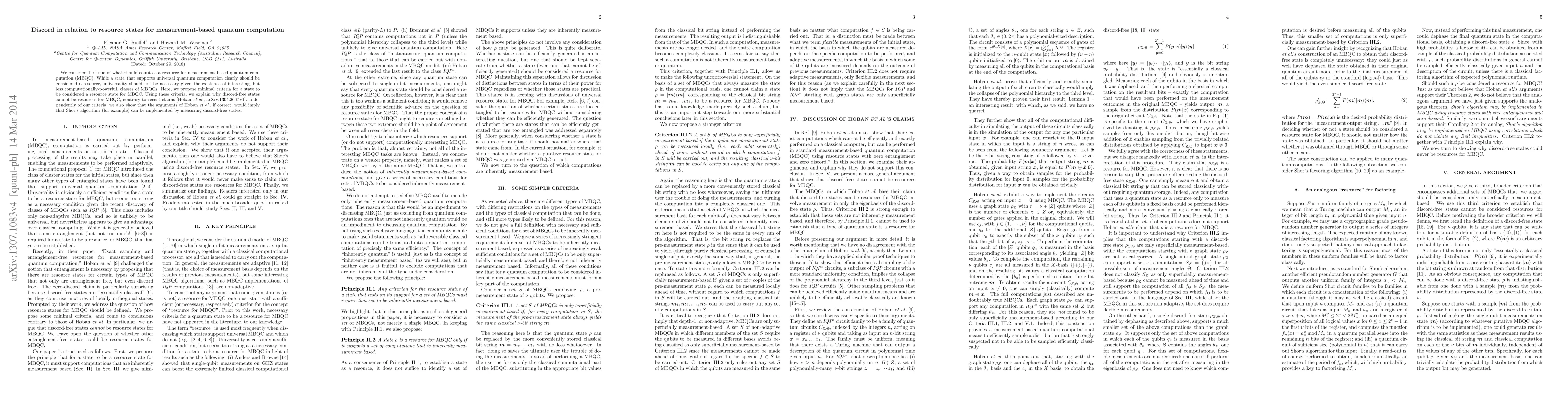 We consider the issue of what should count as a resource for measurement-based quantum computation (MBQC). While a state that supports universal quantum computation clearly should be considered a resource, universality should not be necessary given the existence of interesting, but less computationally-powerful, classes of MBQCs. Here, we propose minimal criteria for a state to be considered a resource state for MBQC. Using these criteria, we explain why discord-free states cannot be resources for MBQC, contrary to recent claims [Hoban et al., arXiv:1304.2667v1]. Independently of our criteria, we also show that the arguments of Hoban et al., if correct, would imply that Shor's algorithm (for example) can be implemented by measuring discord-free states.