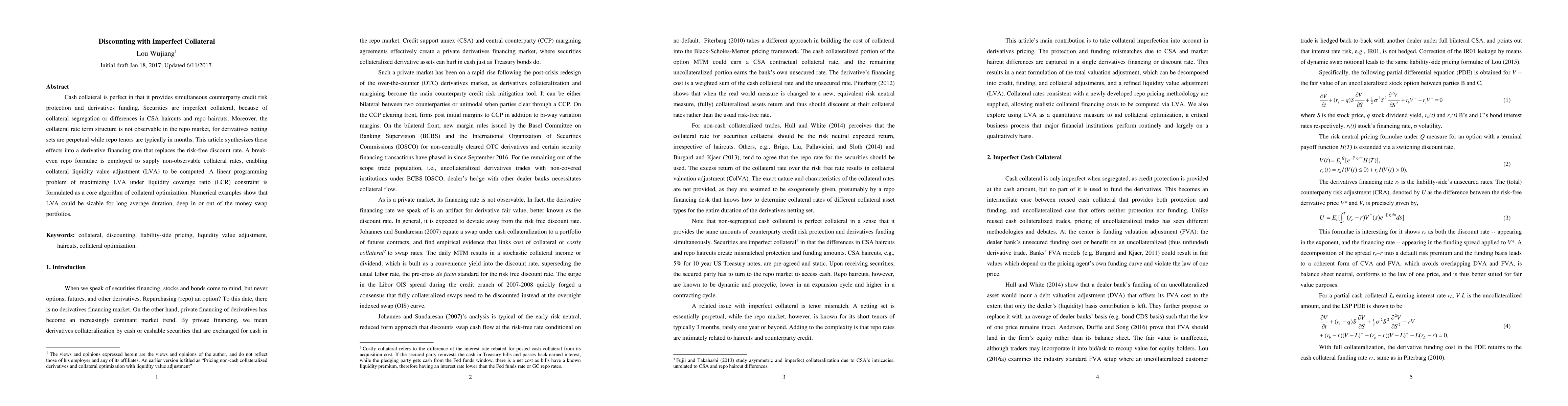 Cash collateral is perfect in that it provides simultaneous counterparty credit risk protection and derivatives funding. Securities are imperfect collateral, because of collateral segregation or differences in CSA haircuts and repo haircuts. Moreover, the collateral rate term structure is not observable in the repo market, for derivatives netting sets are perpetual while repo tenors are typically in months. This article synthesizes these effects into a derivative financing rate that replaces the risk-free discount rate. A break-even repo formulae is employed to supply non-observable collateral rates, enabling collateral liquidity value adjustment (LVA) to be computed. A linear programming problem of maximizing LVA under liquidity coverage ratio (LCR) constraint is formulated as a core algorithm of collateral optimization. Numerical examples show that LVA could be sizable for long average duration, deep in or out of the money swap portfolios.