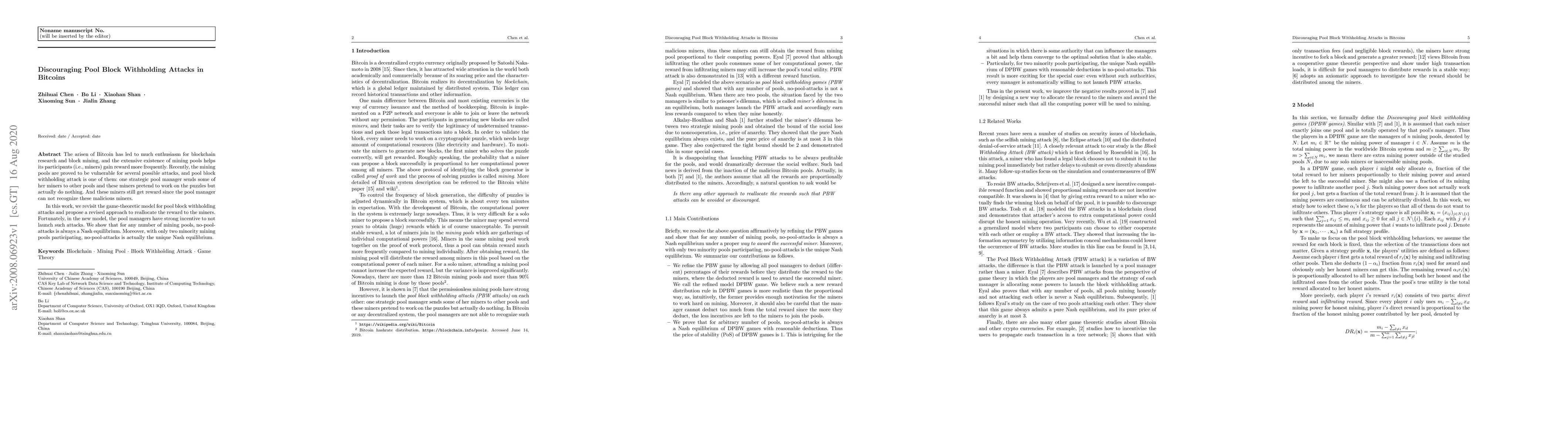 Researchers propose a revised approach to prevent pool block withholding attacks in Bitcoin mining pools, showing that pool managers have strong incentives not to launch such attacks due to the Nash equilibrium.