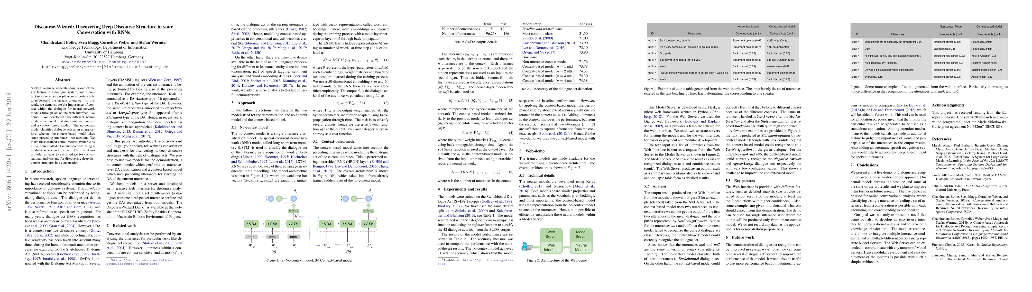 This paper introduces Discourse-Wizard, a live demo showcasing the importance of context in neural network models for spoken language understanding. It compares an utterance-level model without context to a context-based model that considers preceding utterances, demonstrating deeper discourse structure discovery through a user-friendly web interface.