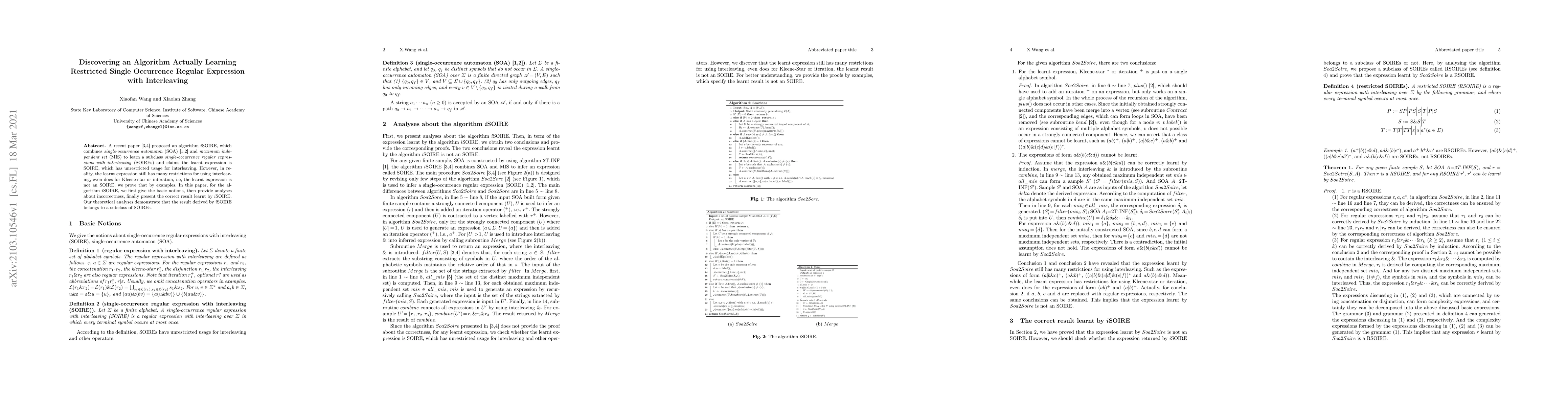 A recent paper proposed an algorithm iSOIRE, which combines single-occurrence automaton (SOA) and maximum independent set (MIS) to learn a subclass single-occurrence regular expressions with interleaving (SOIREs) and claims the learnt expression is SOIRE, which has unrestricted usage for interleaving. However, in reality, the learnt expression still has many restrictions for using interleaving, even does for Kleene-star or interation, i.e, the learnt expression is not an SOIRE, we prove that by examples. In this paper, for the algorithm iSOIRE, we first give the basic notions, then provide analyses about incorrectness, finally present the correct result learnt by iSOIRE. Our theoretical analyses demonstrate that the result derived by iSOIRE belongs to a subclass of SOIREs.
